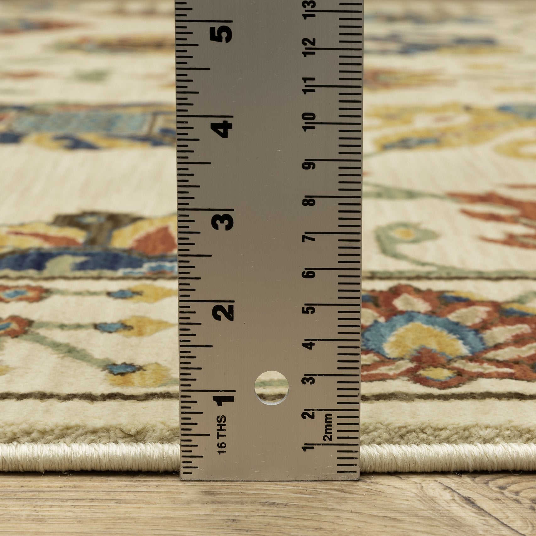 - Rug colors include shades of ivory, cerulean blue, gold, rust, deep blue, brown, sage