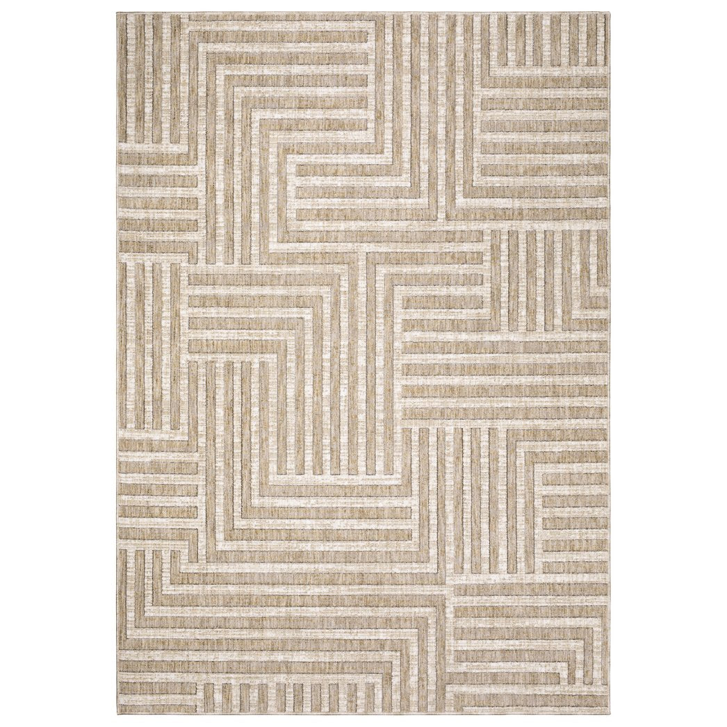 - This modern geometric area rug showcases an intricate maze-like pattern of interlocking lines and right angles, creating a sophisticated visual effect. The neutral beige and cream tones enhance its versatility, making it ideal for contemporary, minimalist, and transitional interiors. With a soft texture and structured design, this rug adds both elegance and depth, seamlessly complementing wood, metallic, and neutral-toned décor.