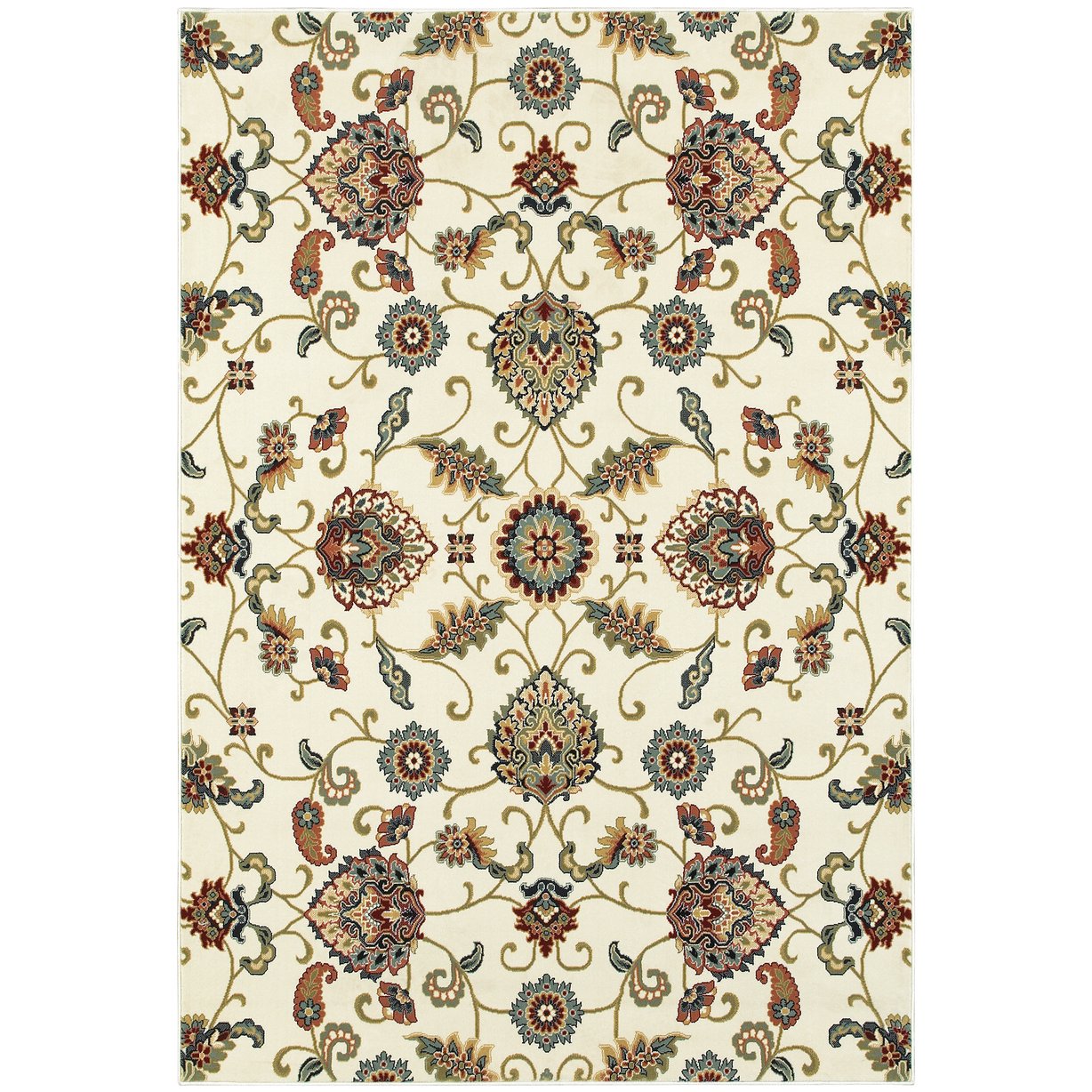 - Rug colors include shades of ivory, green, blue, red, salmon and yellow