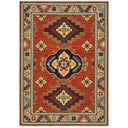 - Color(s): Rug features shades of red, gold, blue, brown and ivory