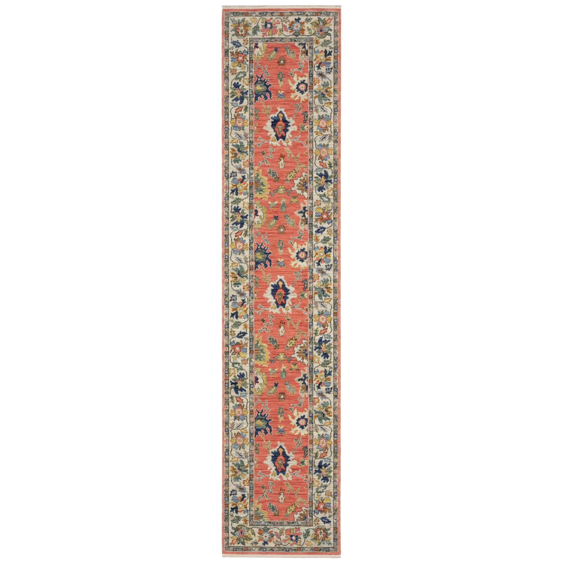 - Rug colors include shades of salmon, peach, blue, gold, green, ivory, grey, red and brown