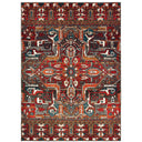- Color(s): Rug colors include red and orange with accents of blue and gray