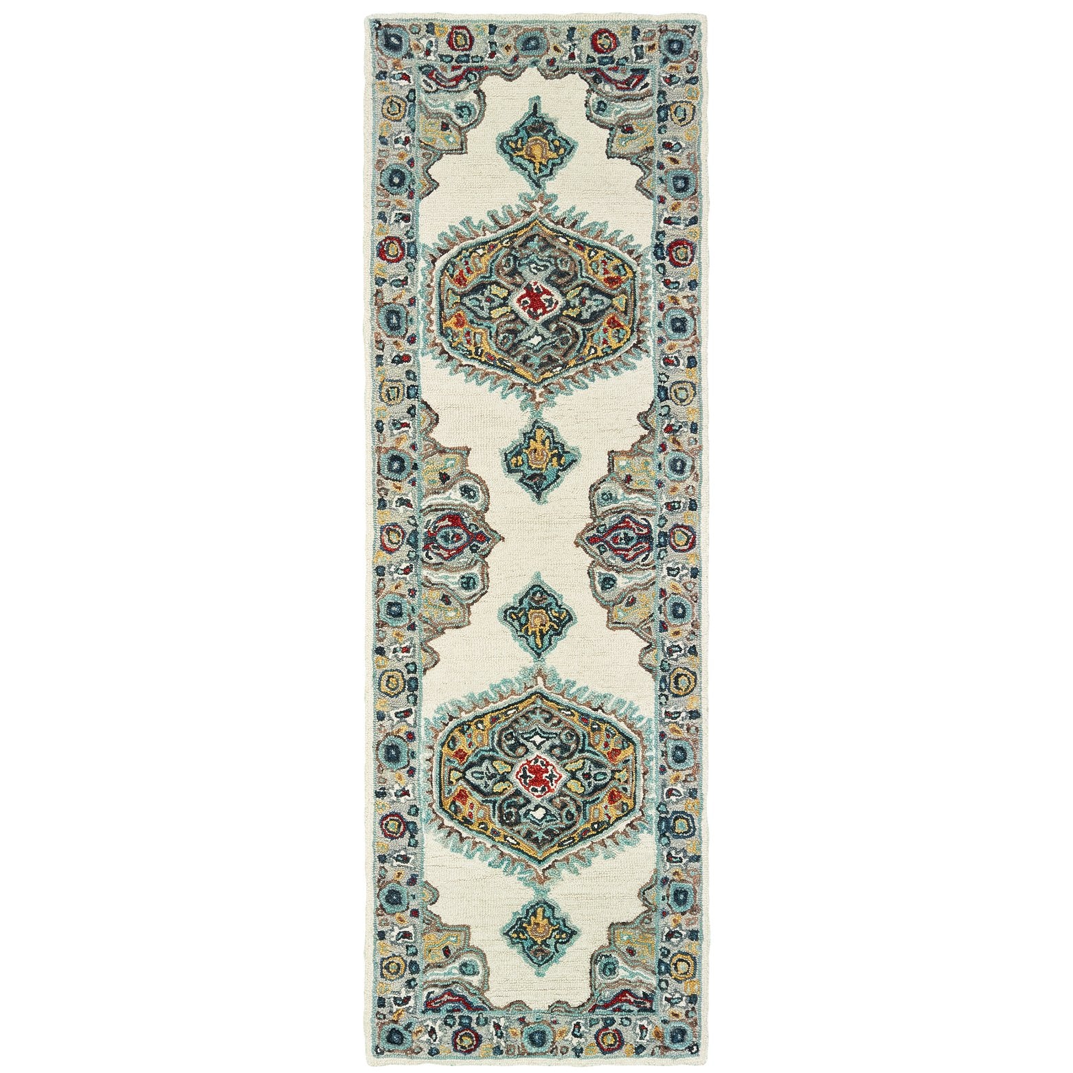 - Rug colors include ivory and gray backdrop with pops of gold, pumpkin, magenta and turquoise