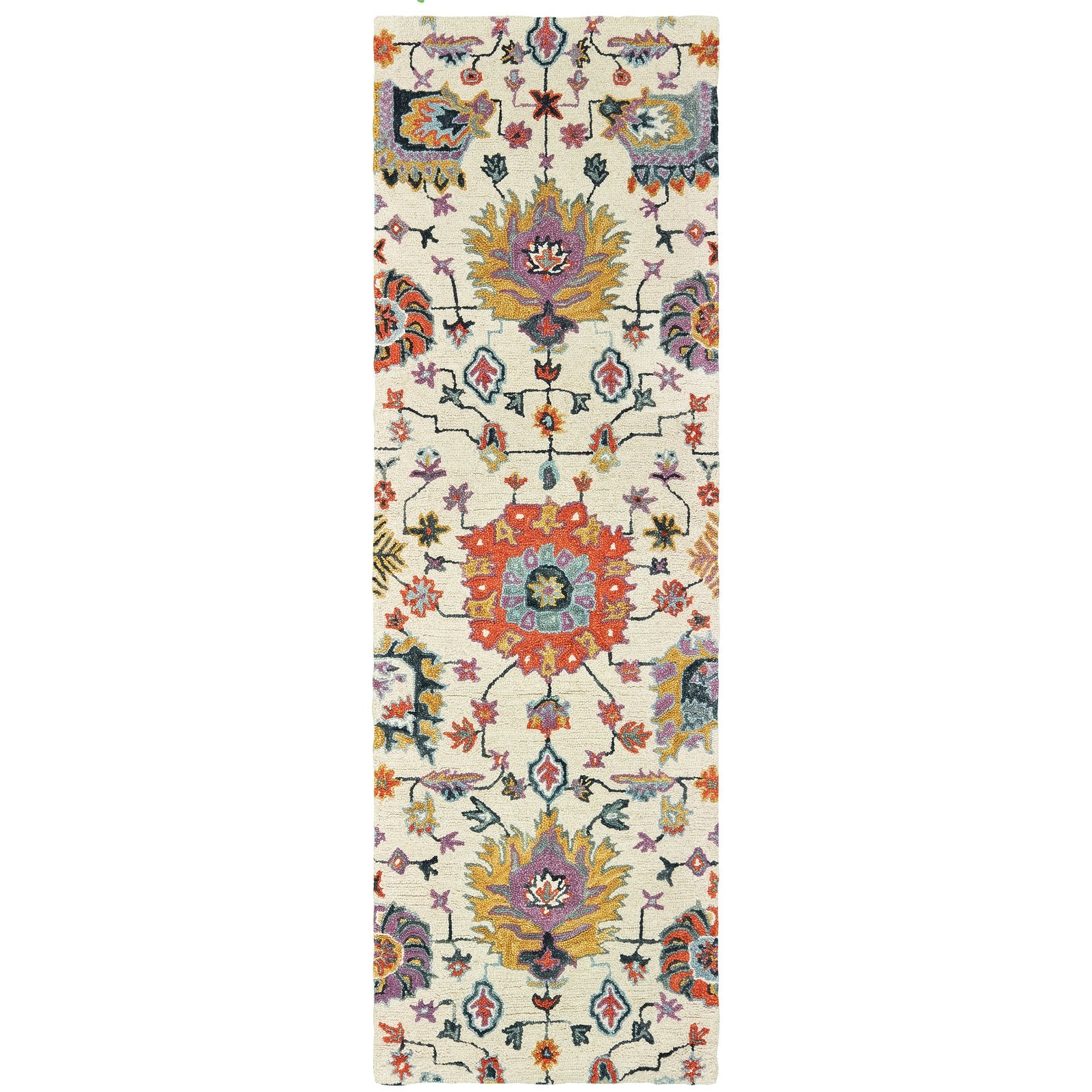 - Rug colors include ivory with pops of gold, pumpkin, magenta and turquoise