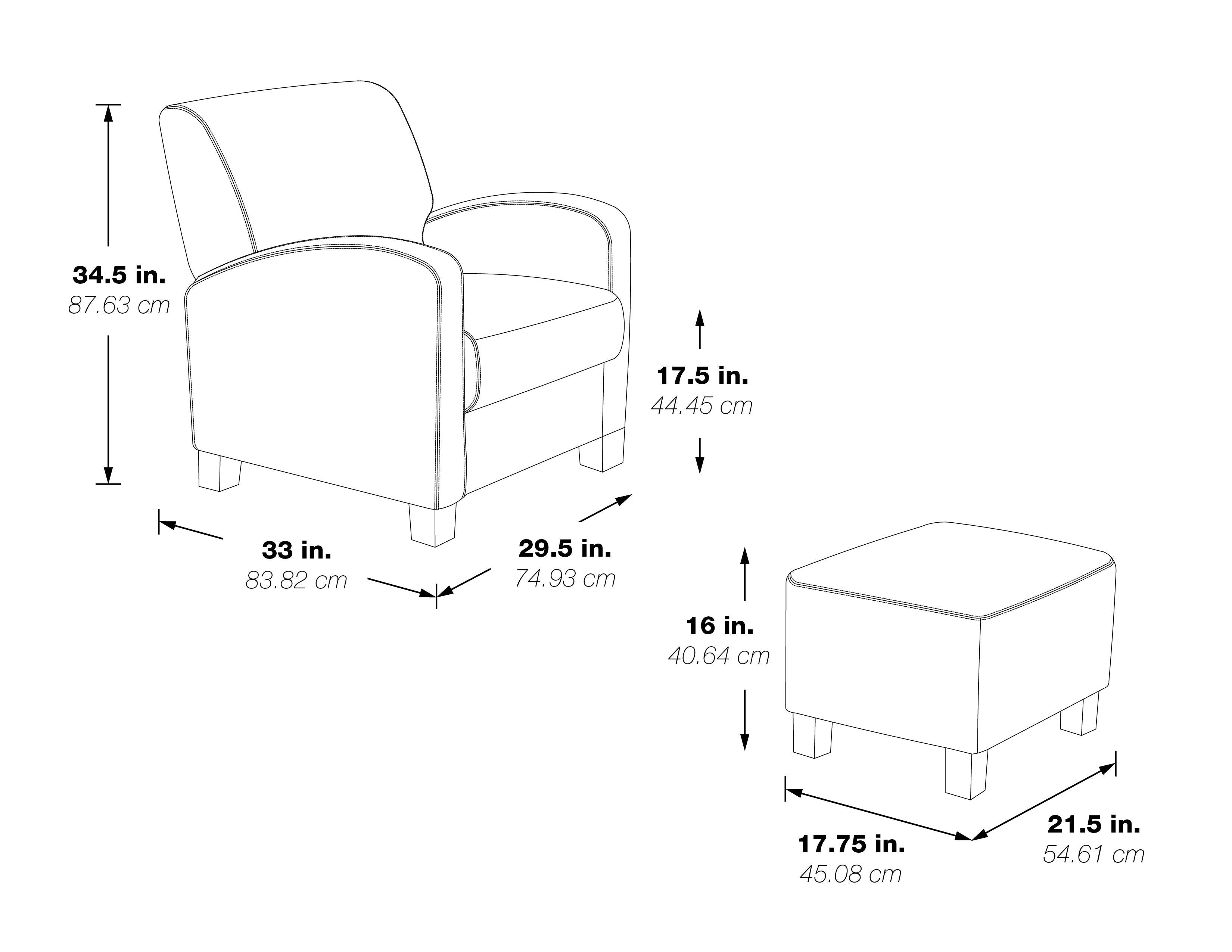 - Seat Dimensions ( Overall ): 21.5"W x 21.25"D x 6.5"T