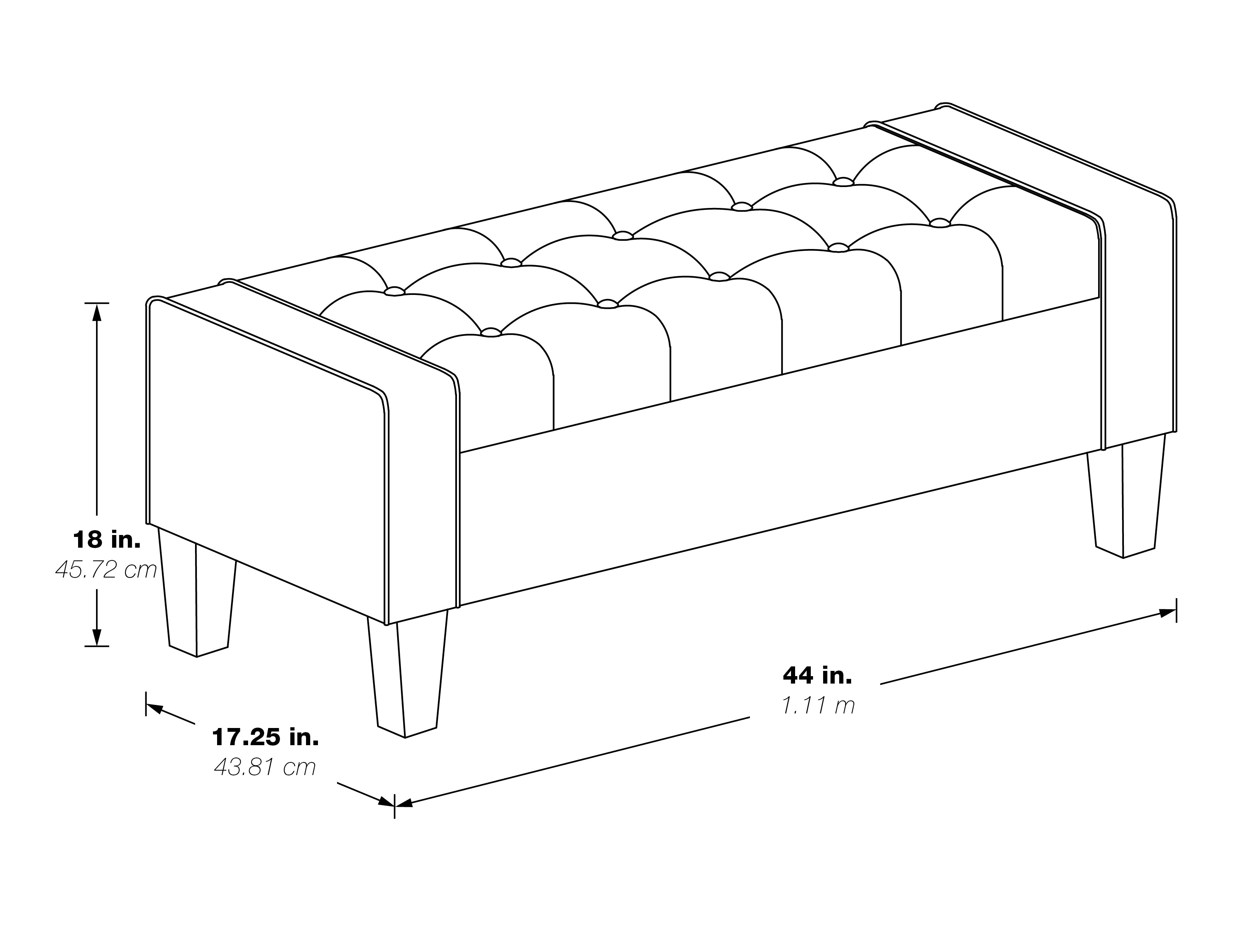 - Seat Dimensions ( Overall ): 44"W x 17.25"D x 3"T