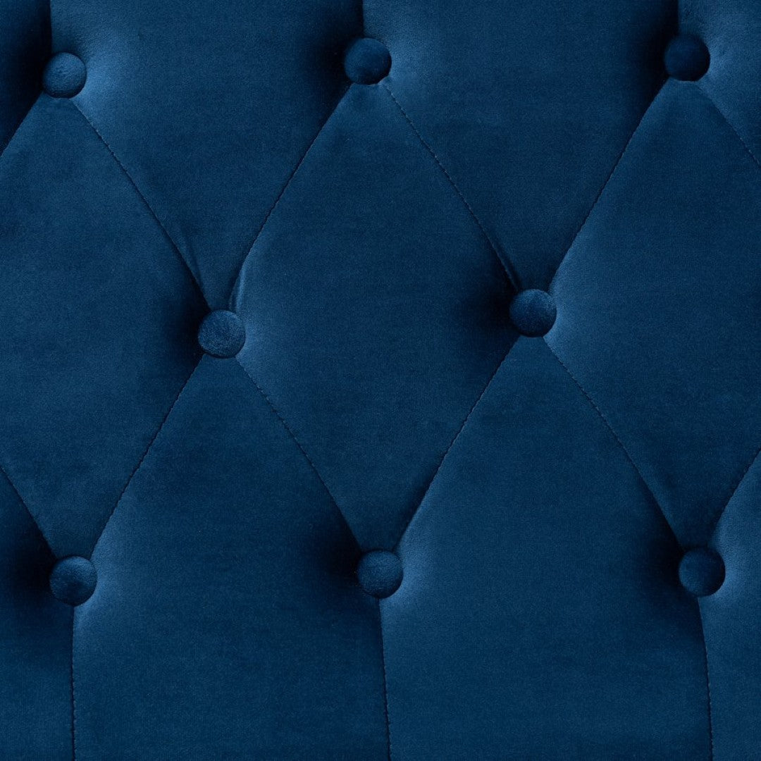 - Luxurious navy blue velvet polyester upholstery with comfortable foam padding