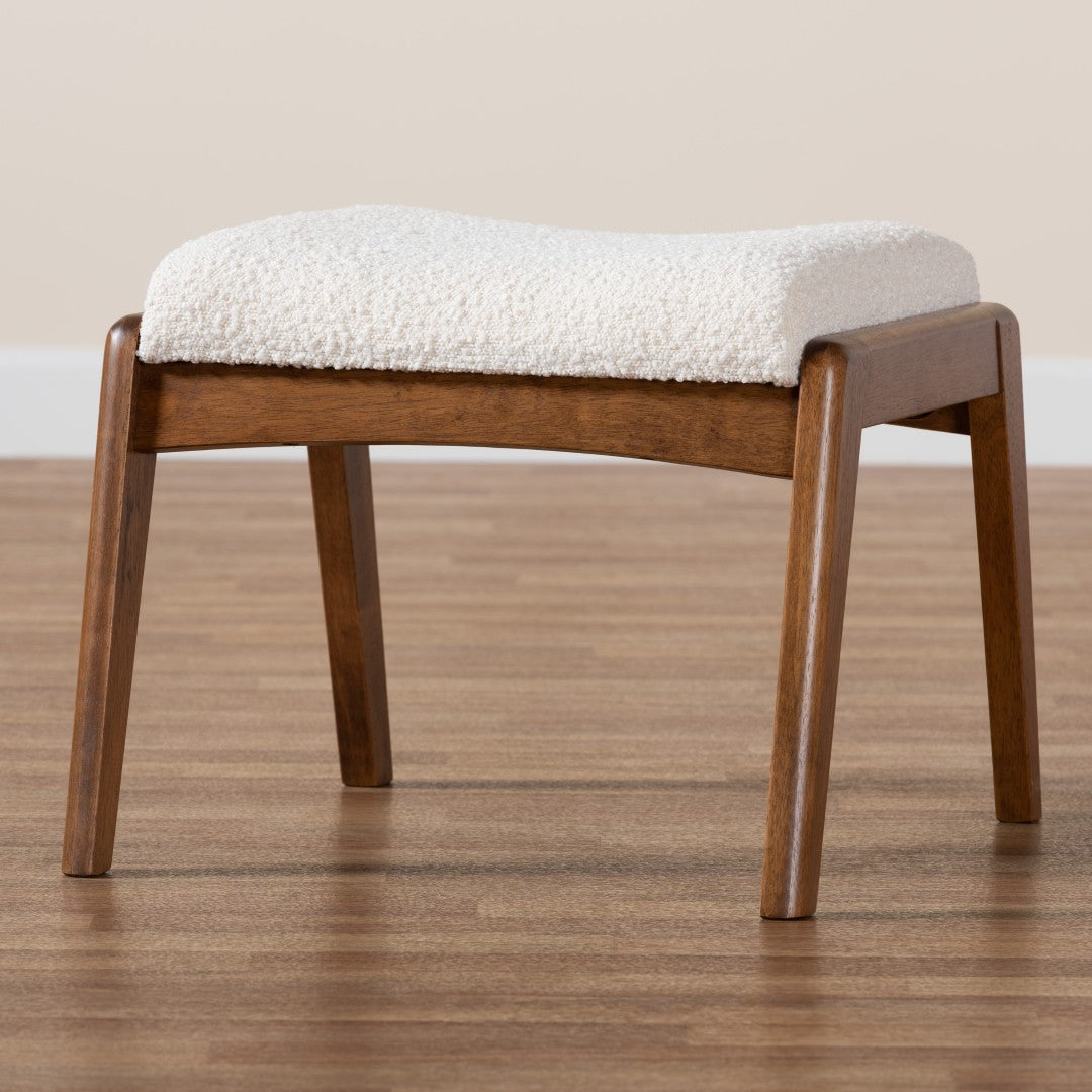 Add a touch of mid-century charm and modern comfort to your living space with this elegant ottoman. Designed for versatility, it works equally well as a footstool, extra seating, or an accent piece. Crafted with a solid-engineered wood frame, plush foam padding, and soft boucle upholstery, the ottoman pairs a retro silhouette with durable construction for everyday use.