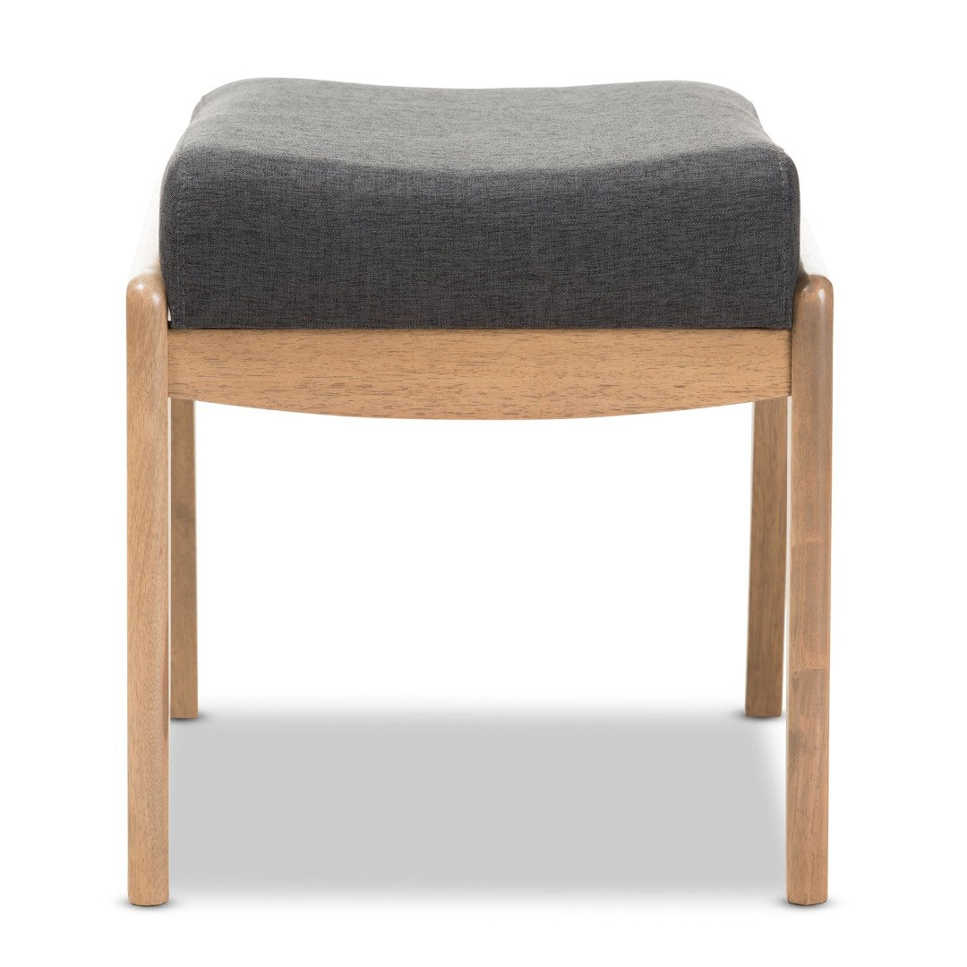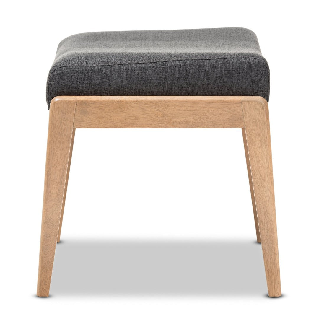 Give your living space a touch of mid-century modern flair with the Wera ottoman — a compact, stylish, and versatile piece that works as extra seating, a footrest, or an accent in any room. Upholstered in dark grey polyester with foam padding and supported by solid rubberwood legs finished in a warm oak light brown, this piece blends comfort and clean retro lines for everyday use and easy portability.