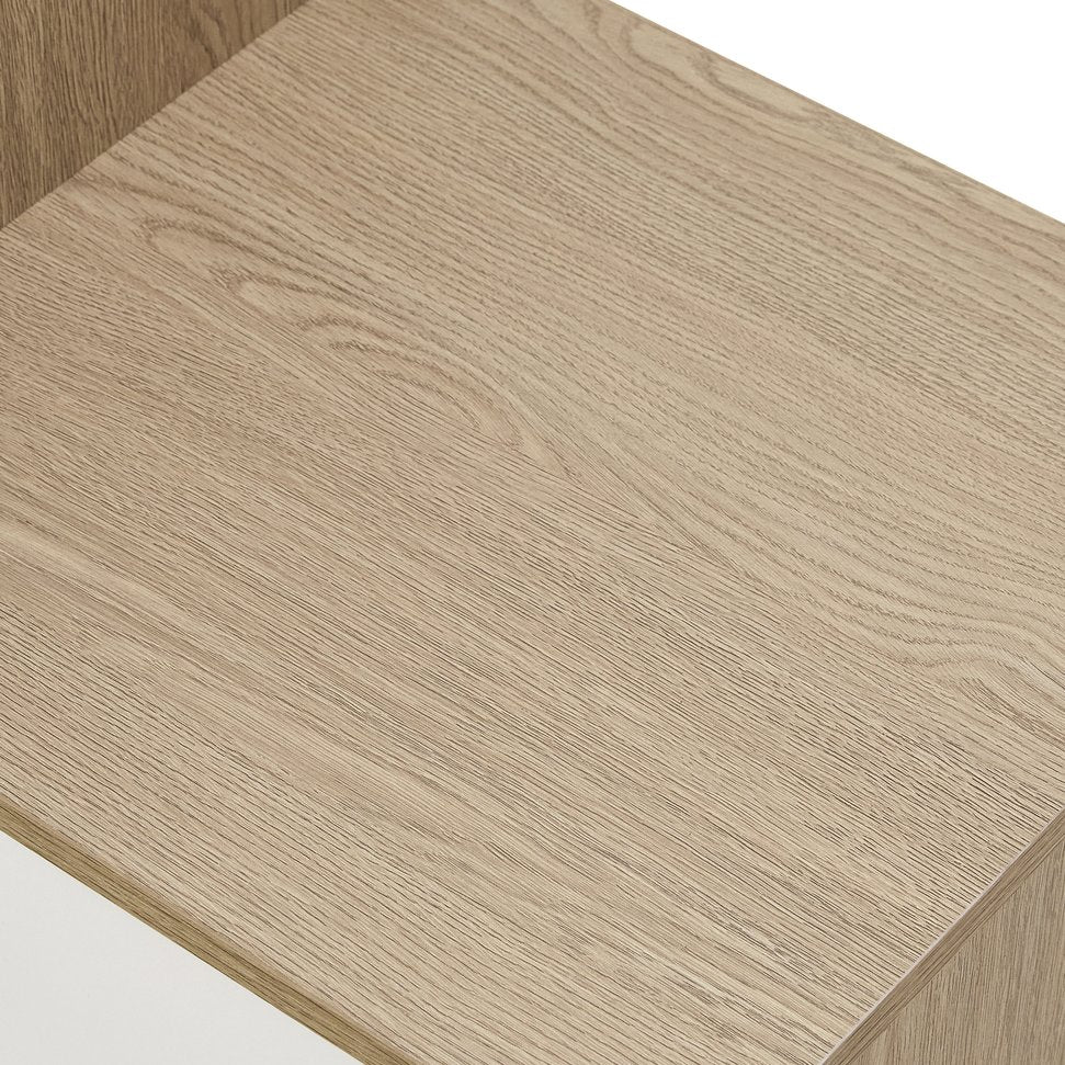 - Durable Construction: P2 furniture-grade MDF with high-end melamine oak-grain finish and long metal handles for a premium look and feel.