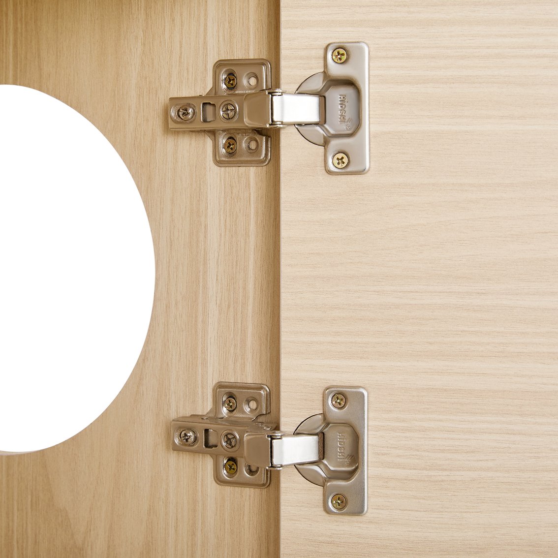 - Materials & Finish: Constructed from particle board and MDF with a natural + grey finish; wipe spills immediately with a damp cloth and avoid harsh surface cleaners to preserve the finish.