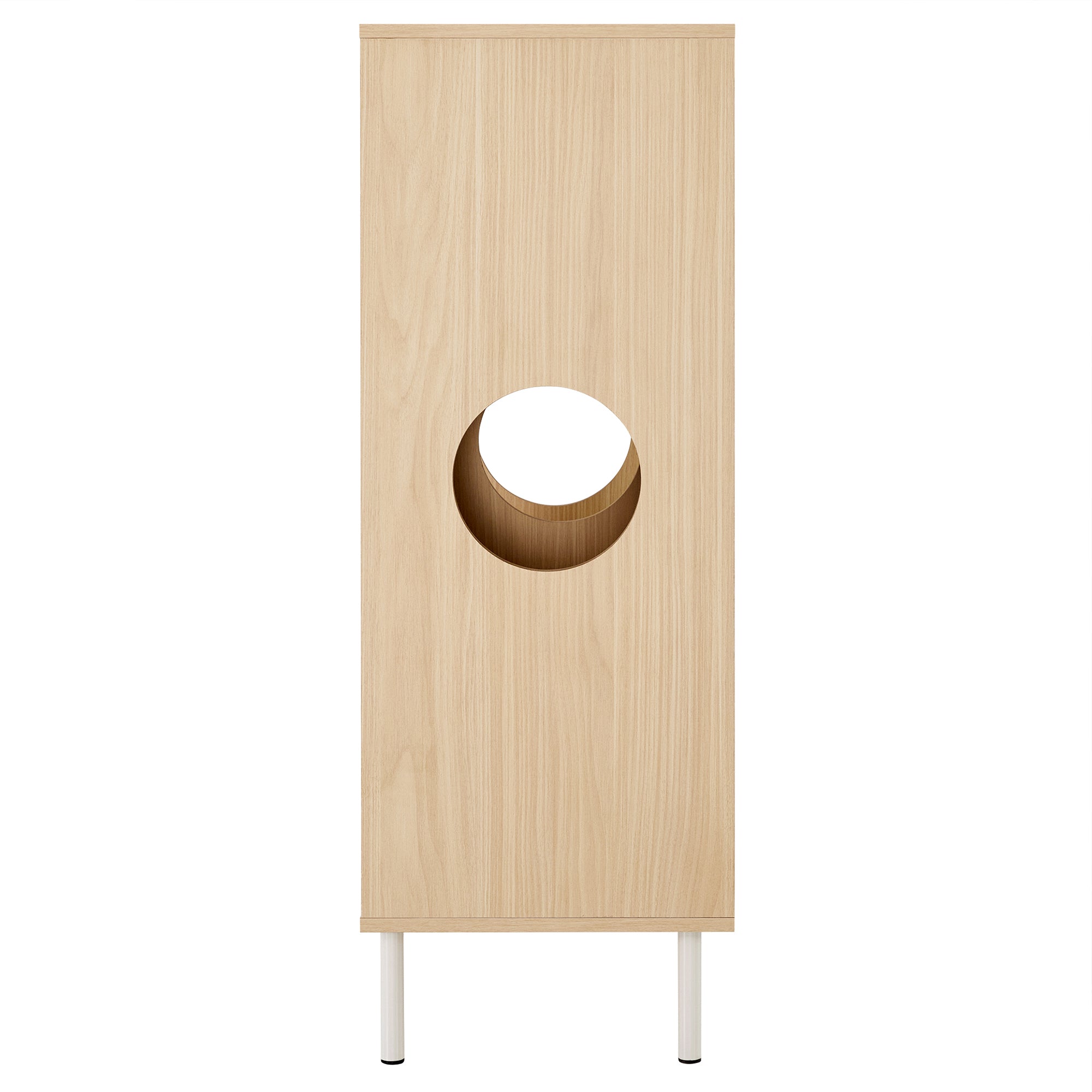 - CAT-FRIENDLY DESIGN : The built-in circular hole is a delightful feature for cat owners, providing a fun climbing and exploring spot for your feline friend. It allows your cat to move in and out freely, turning the cabinet into an interactive pet furniture piece. This design not only entertains your cat but also integrates pet-friendly elements into your home decor seamlessly.