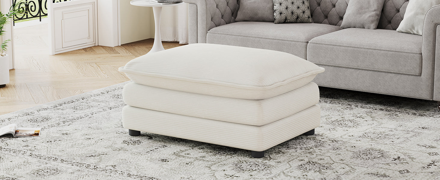 - Comfortable Seating Experience – This ottoman features an extra-deep 25.6" seat, offering a soft and cozy feel. It's fully upholstered in plush corduroy fabric, so when you sit down, you’ll immediately notice the smooth, wrinkle-free touch of the high-quality material.