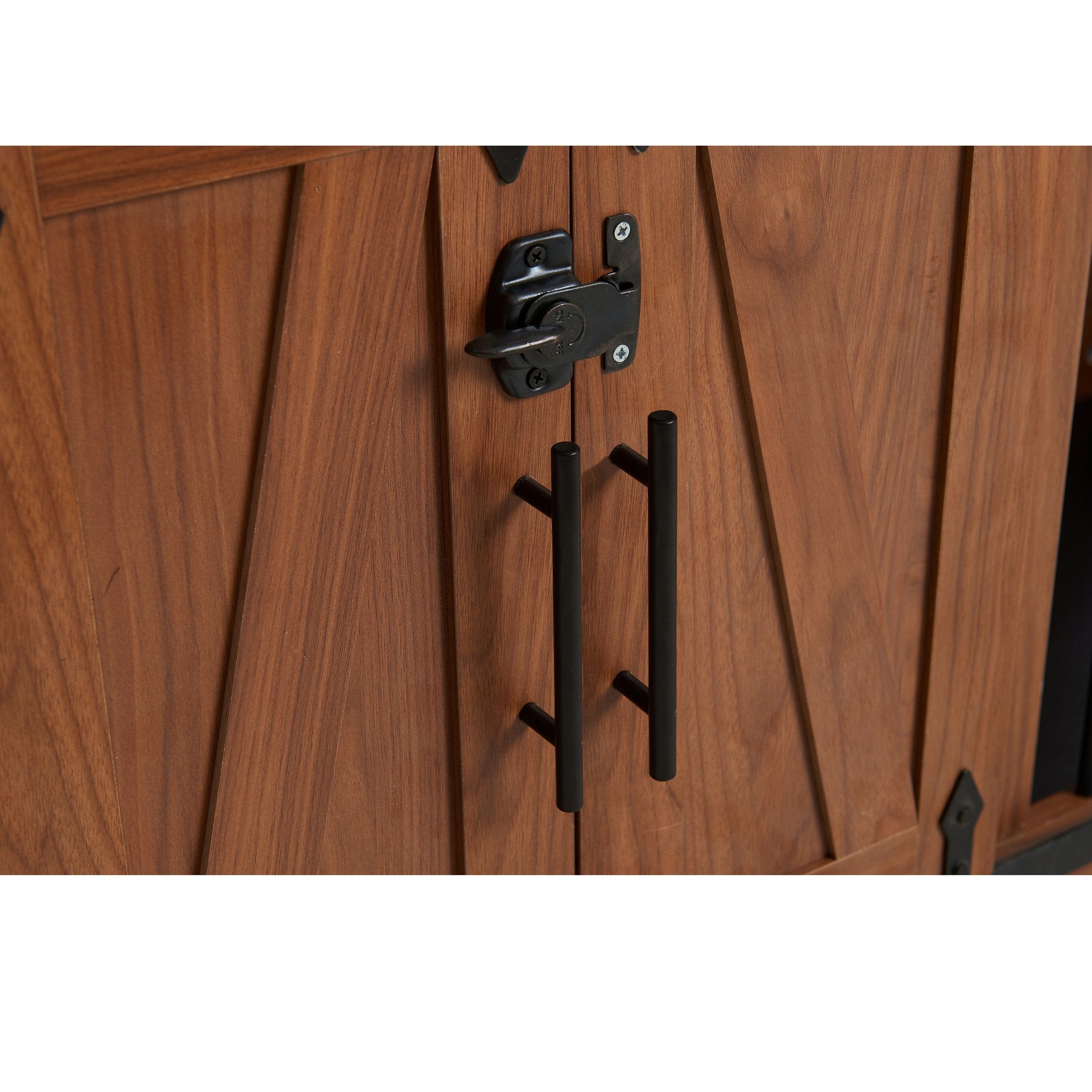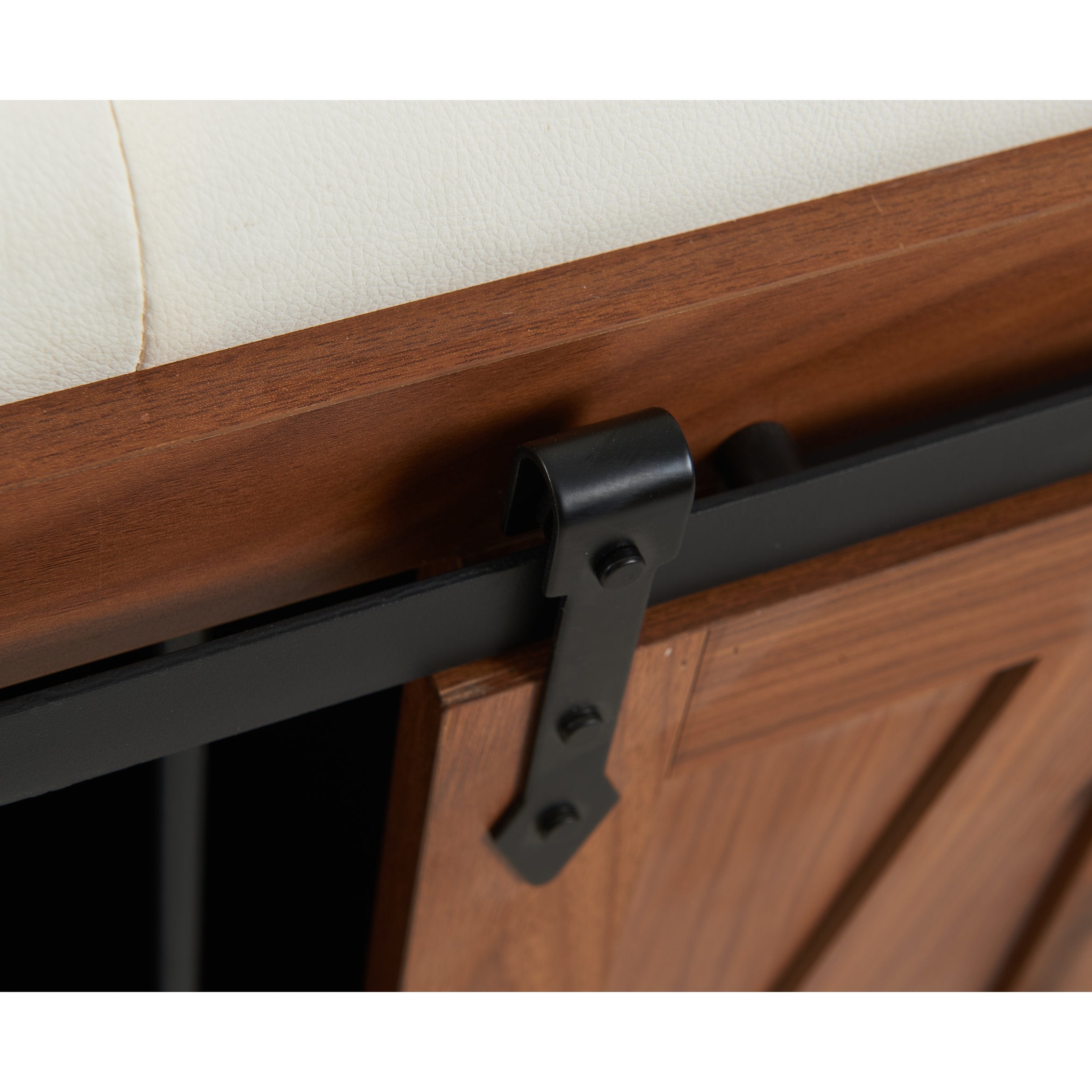 - ROOMY AND SAFE: The bench dog cage measures 56"L x 22.3"W x 25.75"H, suitable for small to medium dogs. It features a designed sliding barn door with black metal locks and handles, ensuring easy access and safety for your pet. The steel bars offer excellent ventilation and visibility, making a comfy space for your pet.