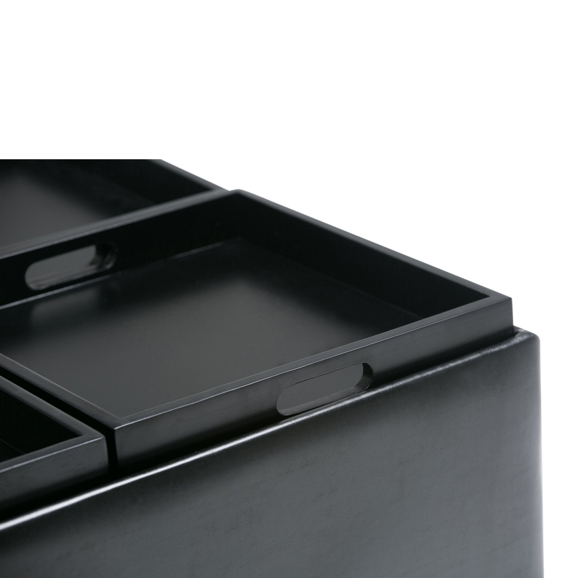 Elevate your living space with this versatile, contemporary square storage ottoman. Upholstered in durable Midnight Black vegan faux leather and thoughtfully constructed with solid and engineered woods plus high-density foam, it serves as a stylish coffee table, extra seating, footstool, or hidden storage solution—perfect for modern living rooms and family rooms.