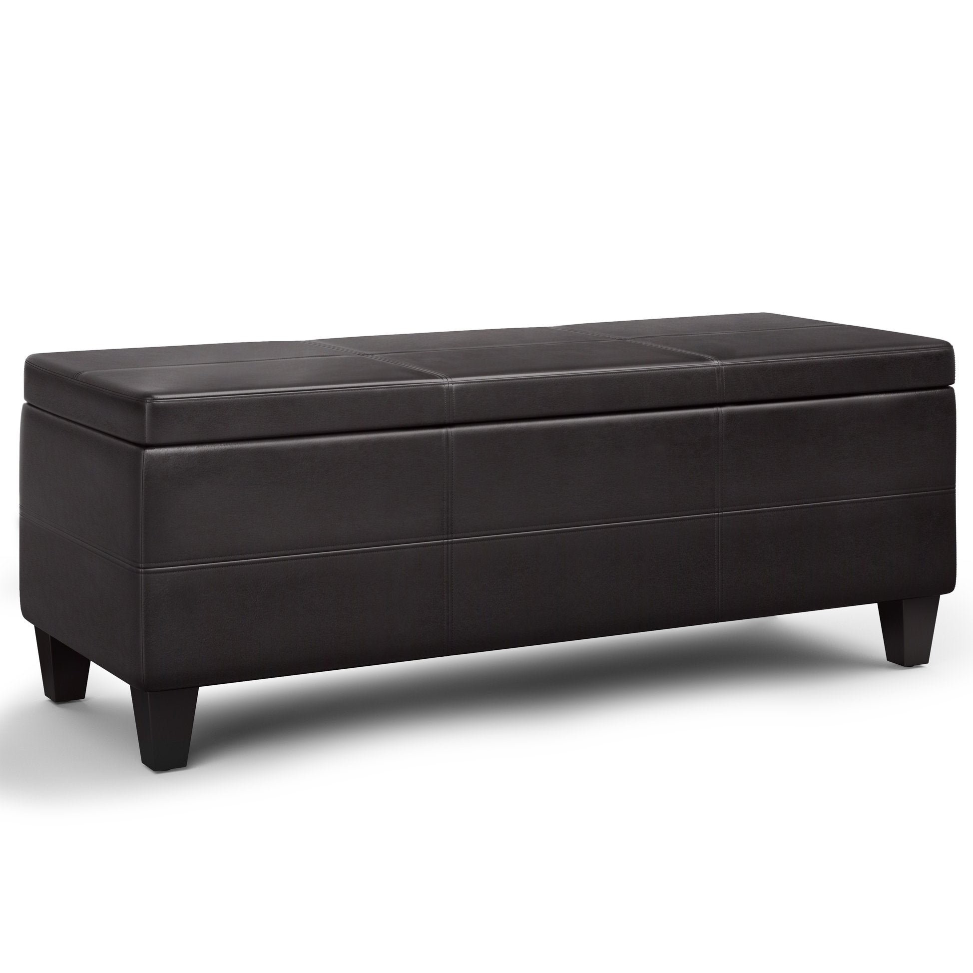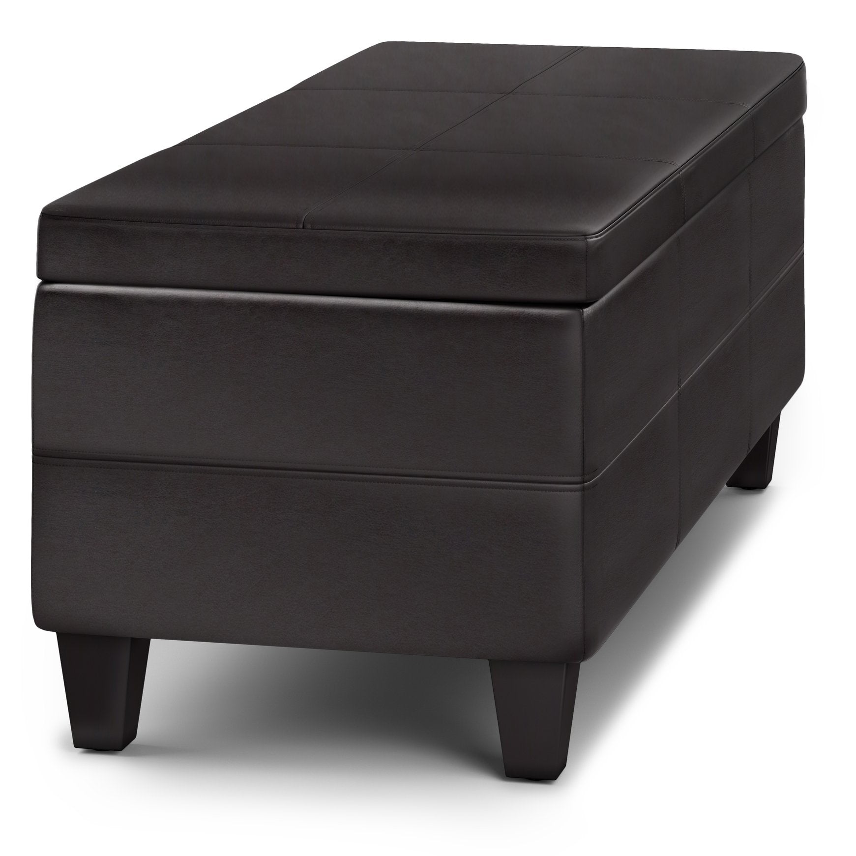 Enjoy versatile style and smart storage with this contemporary lift-top rectangular ottoman. Upholstered in rich Tanners Brown vegan faux leather, it combines the look of real leather with easy maintenance and family-friendly functionality—perfect as a coffee table, extra seating, or a hidden storage solution for living rooms, condos, and bedrooms.