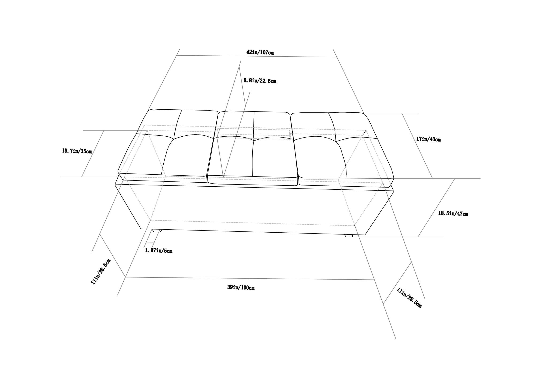 - Dimensions: 42" W x 17" D x 18.5" H (Manufacturer also lists product dimensions as 42.52" L x 17.91" W x 16.14" H)