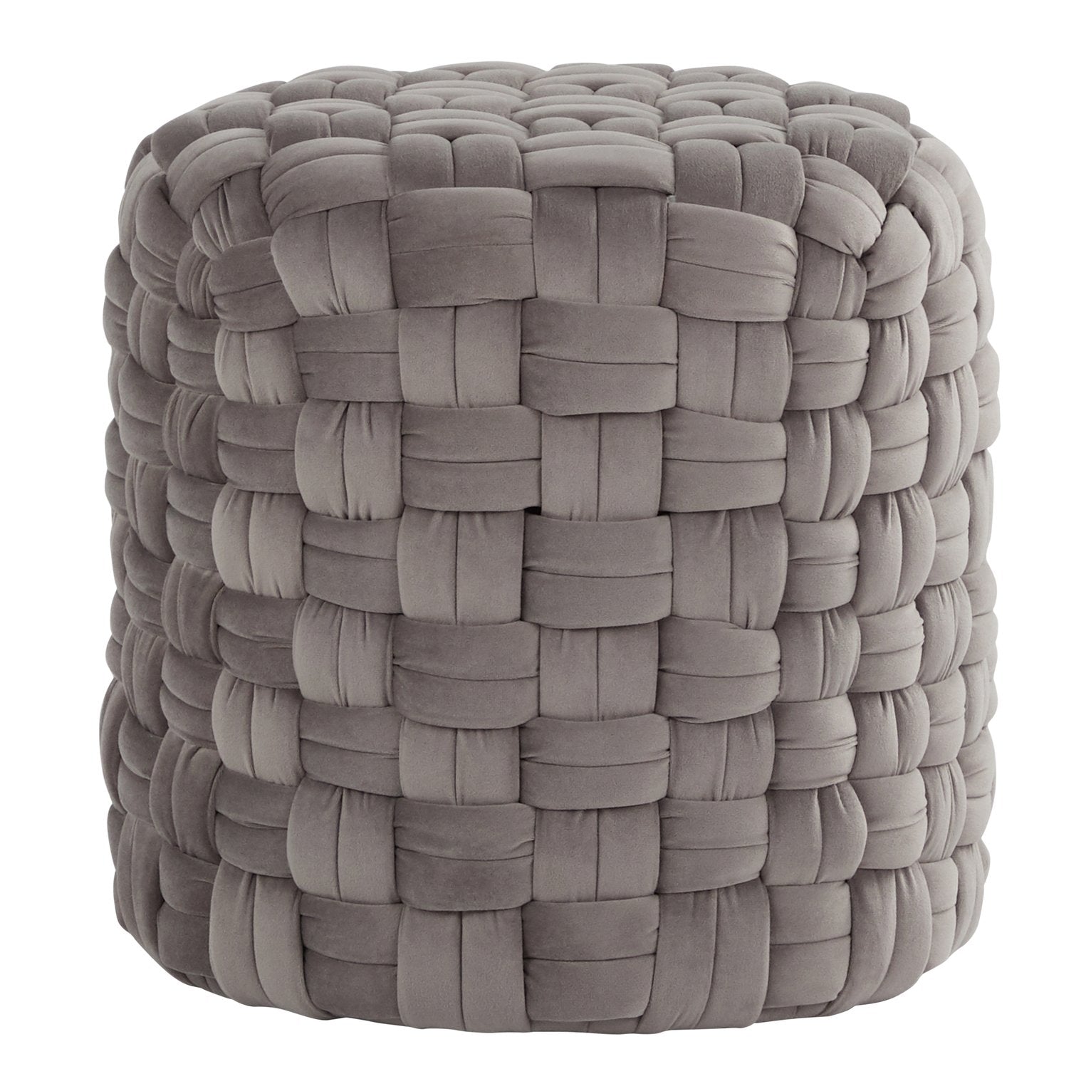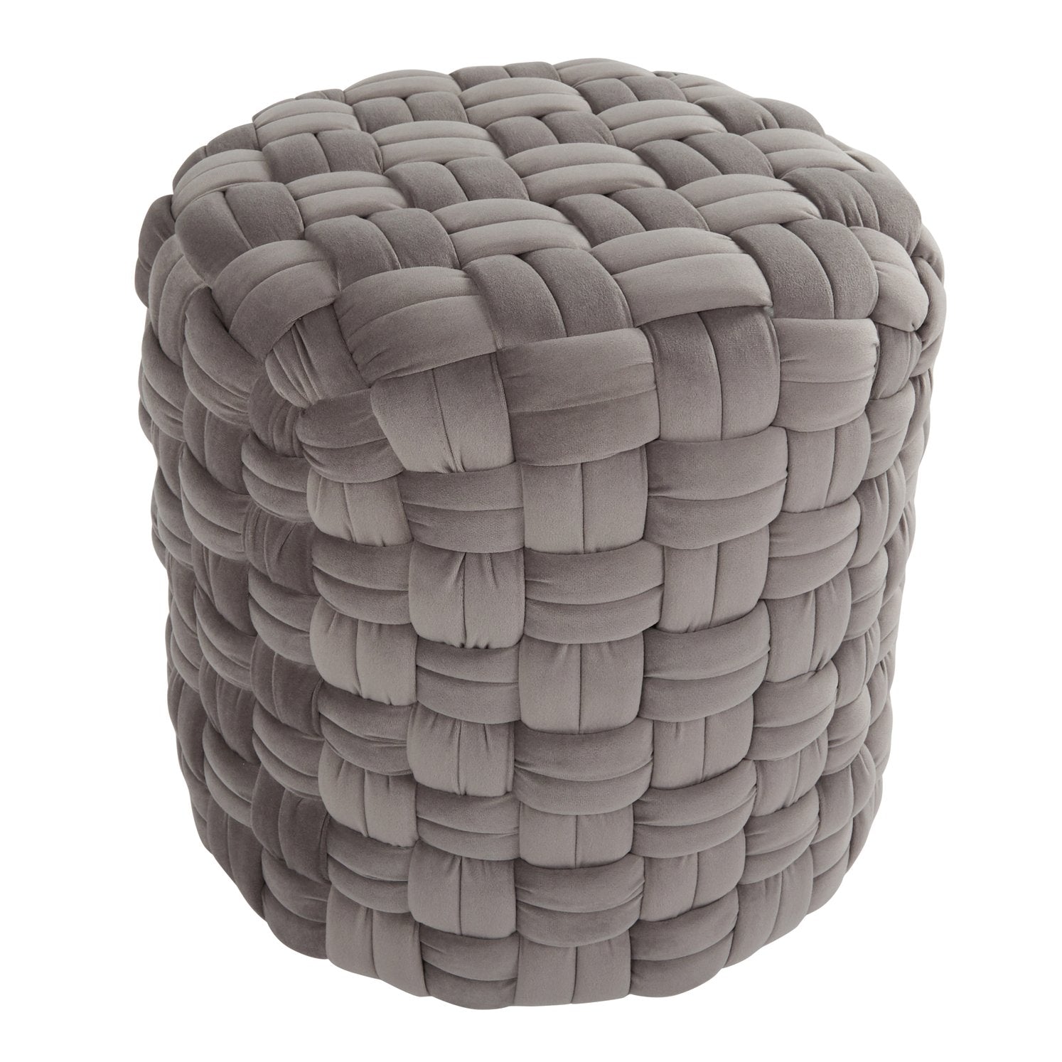 Add a touch of modern elegance and versatile function to any room with this braided round ottoman in dark grey velvet. Its unique braided silhouette and plush foam padding provide both visual interest and comfortable seating or footrest options, while the durable velvet upholstery ensures a soft, luxurious feel that complements contemporary decor.