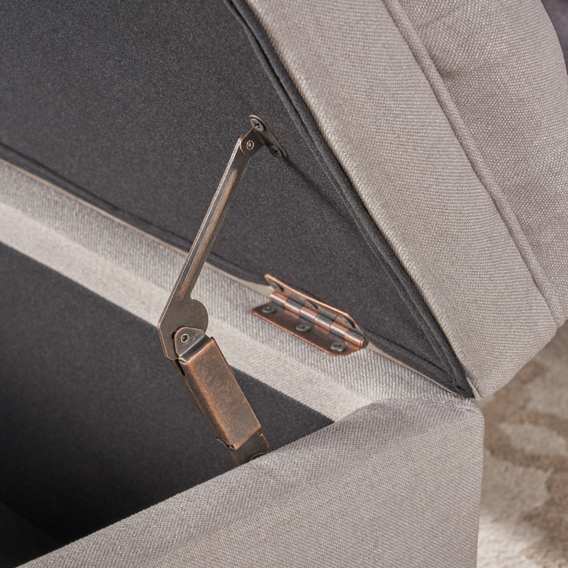 Add practical storage and contemporary style to your living space with this versatile storage ottoman. Upholstered in light grey fabric, it offers a spacious hidden compartment for organizing games, remotes, blankets, and other living-room essentials while serving as extra seating or a footrest.