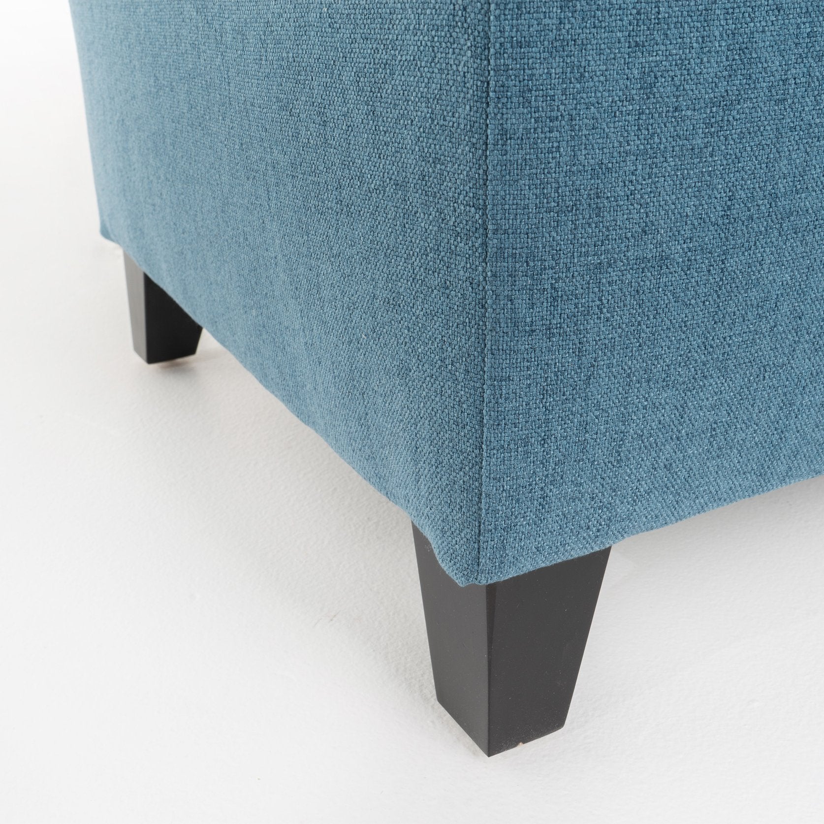 Add smart storage and extra seating to your living space with this versatile fabric storage ottoman. Upholstered in a rich blue fabric with sturdy birch legs, it offers concealed storage for games, remotes, blankets, and more while doubling as comfortable seating or a footrest. Its clean lines and timeless silhouette complement modern and transitional decor.