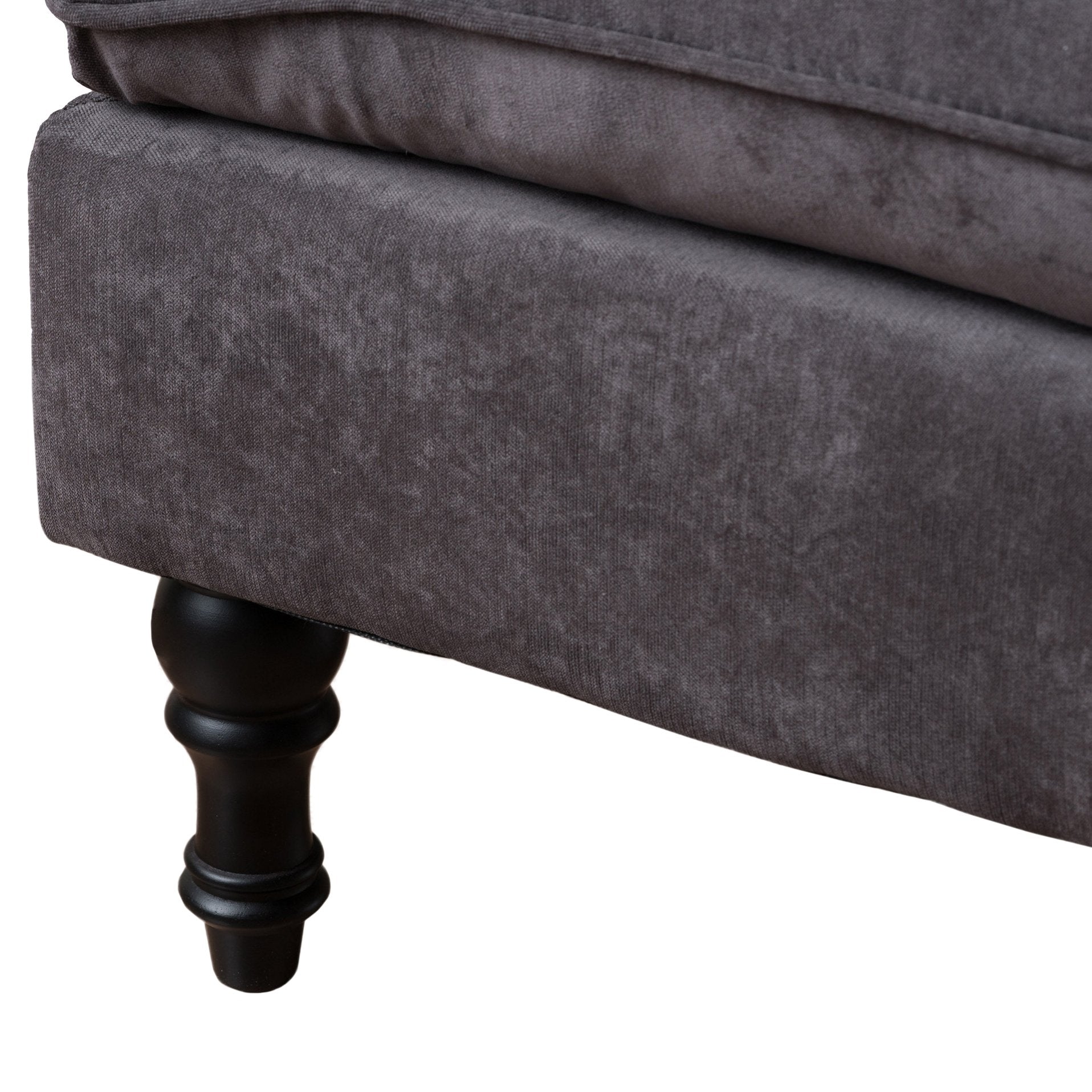 - Classic Espresso-Finished Turned LegsThe four elegantly turned legs feature a deep espresso finish, adding a touch of timeless charm. Their tapered design provides sturdy support while enhancing visual appeal. The dark wood tone contrasts beautifully with lighter upholstery, creating a striking balance that enhances the ottoman’s overall elegance and craftsmanship.