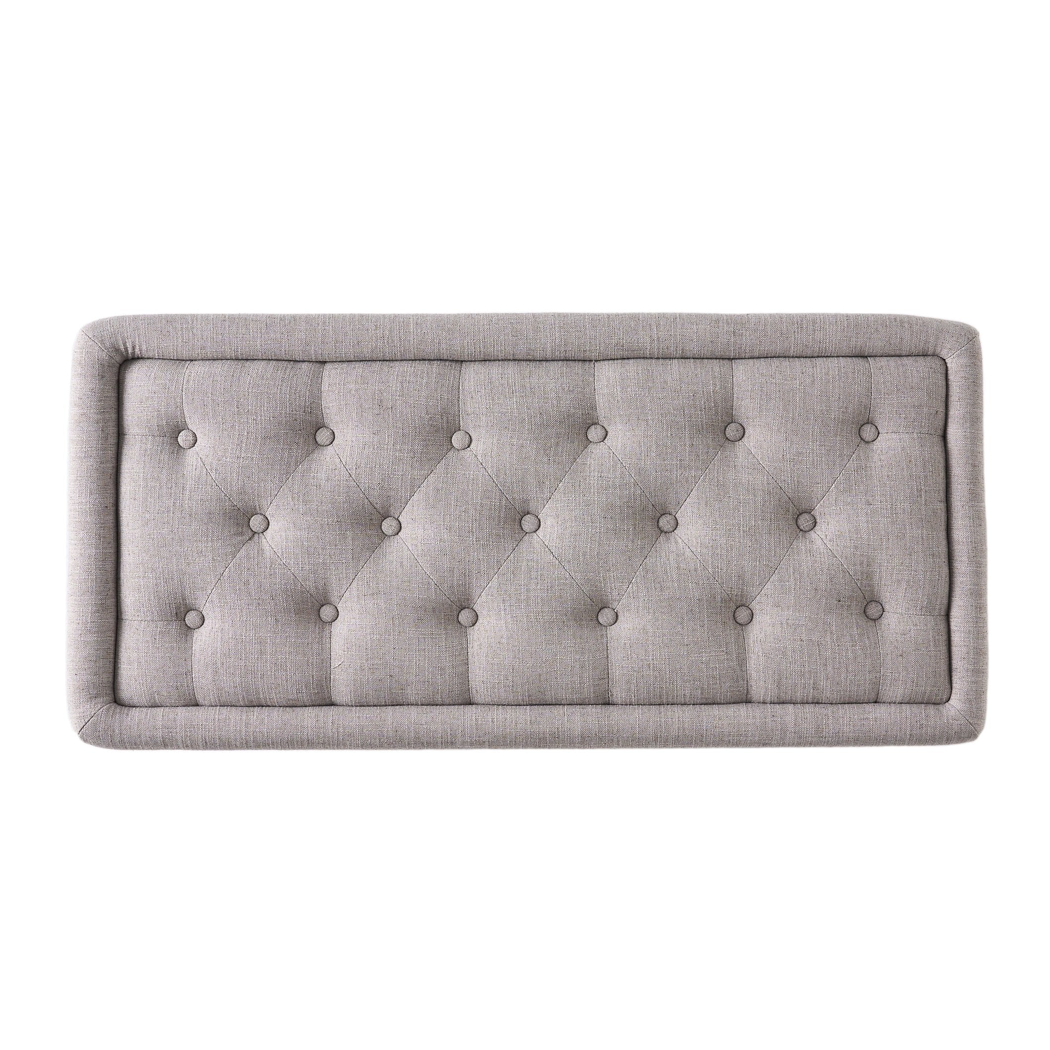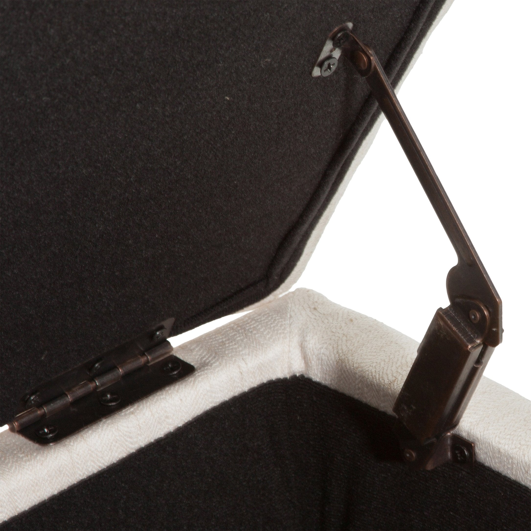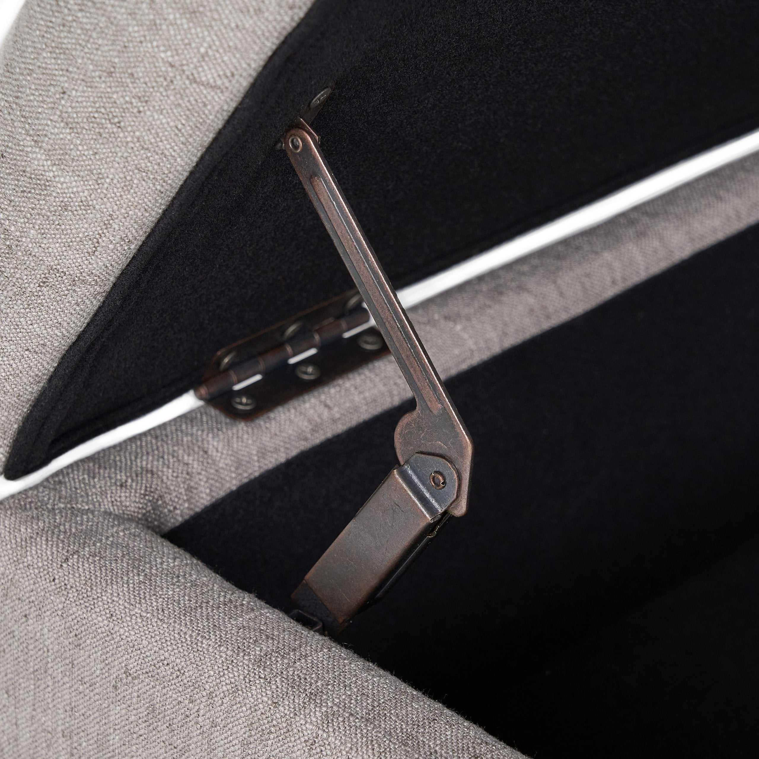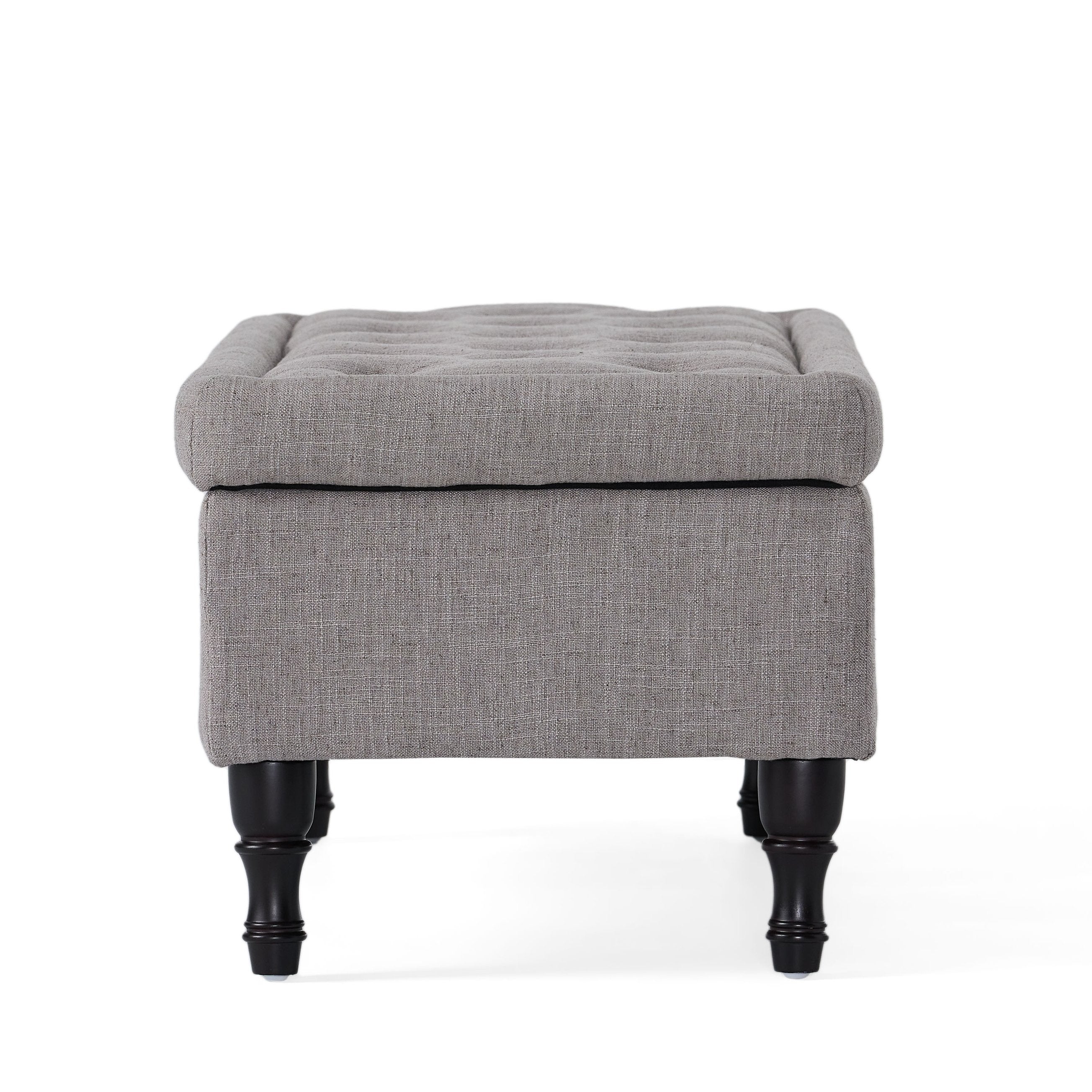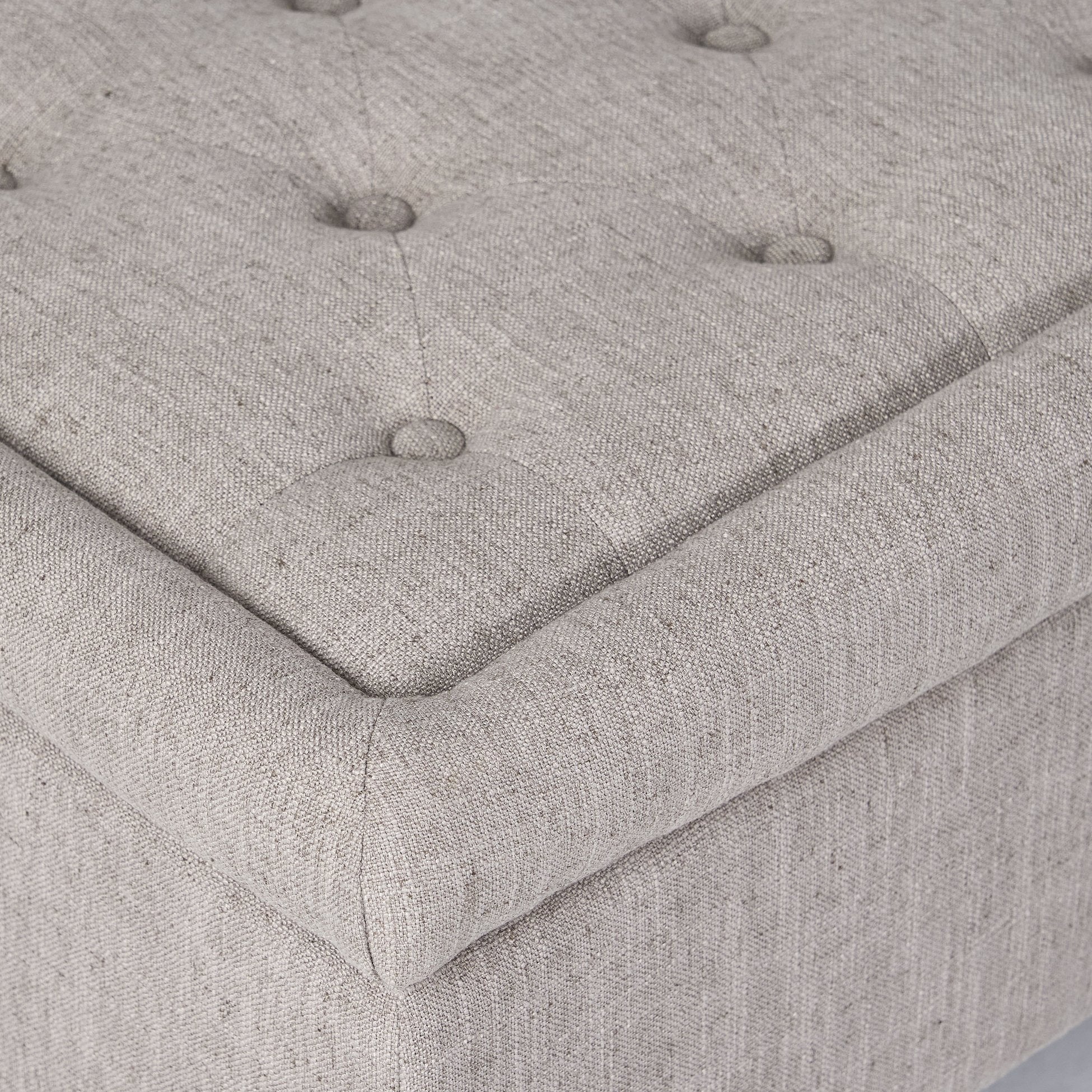 Add practical storage and timeless style to any room with this linen-finish storage ottoman bench. Designed for comfort and functionality, it combines a plush tufted top with a roomy interior for stashing blankets, pillows, shoes, or seasonal items. The clean, modern silhouette and dark solid wood legs make it equally suited to entryways, living rooms, the foot of a bed, or beneath a window as extra seating and discreet storage.