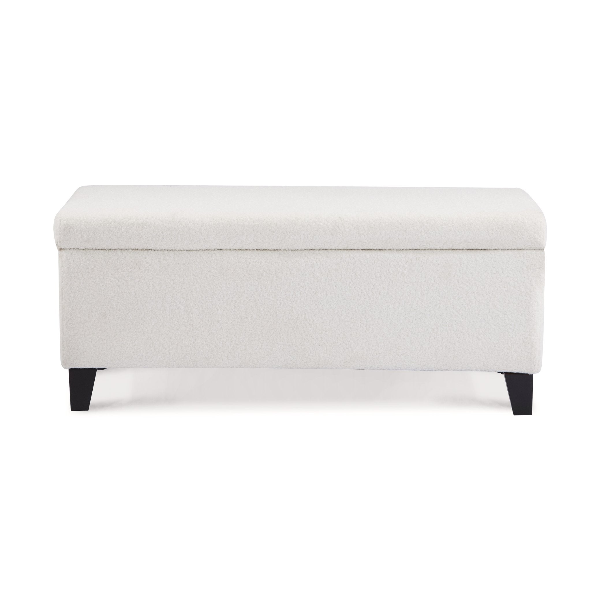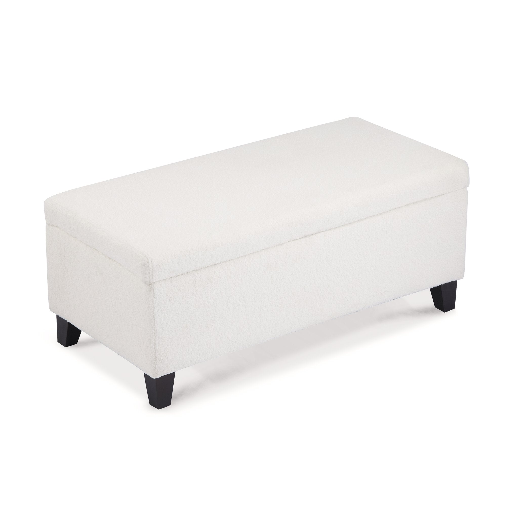 Bring style, comfort, and smart storage to any room with this versatile storage ottoman. Upholstered in soft white boucle fabric and supported by durable birch wood legs, it combines a minimalist aesthetic with practical function—perfect as extra seating, a footrest, or a discreet place to tuck away blankets and pillows.