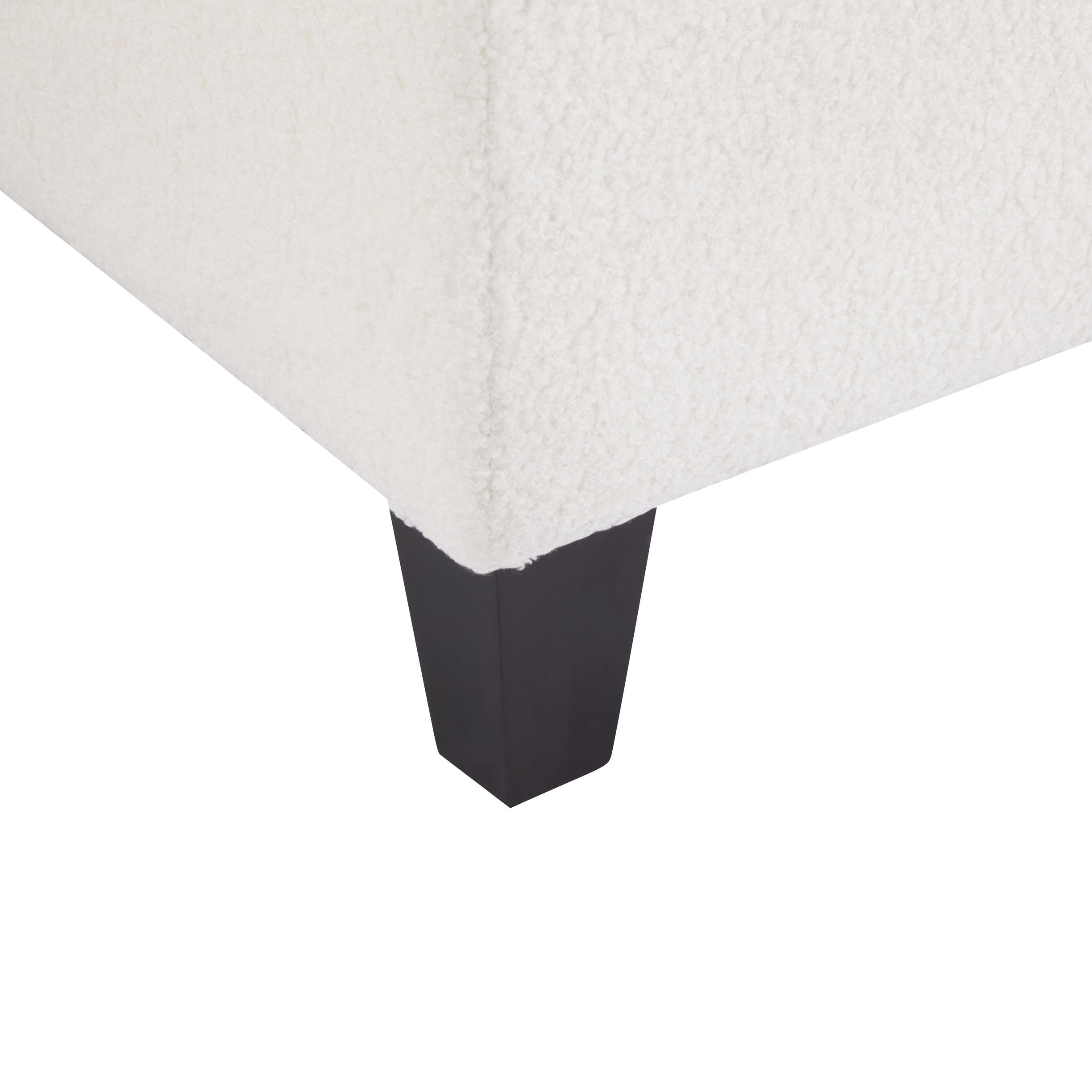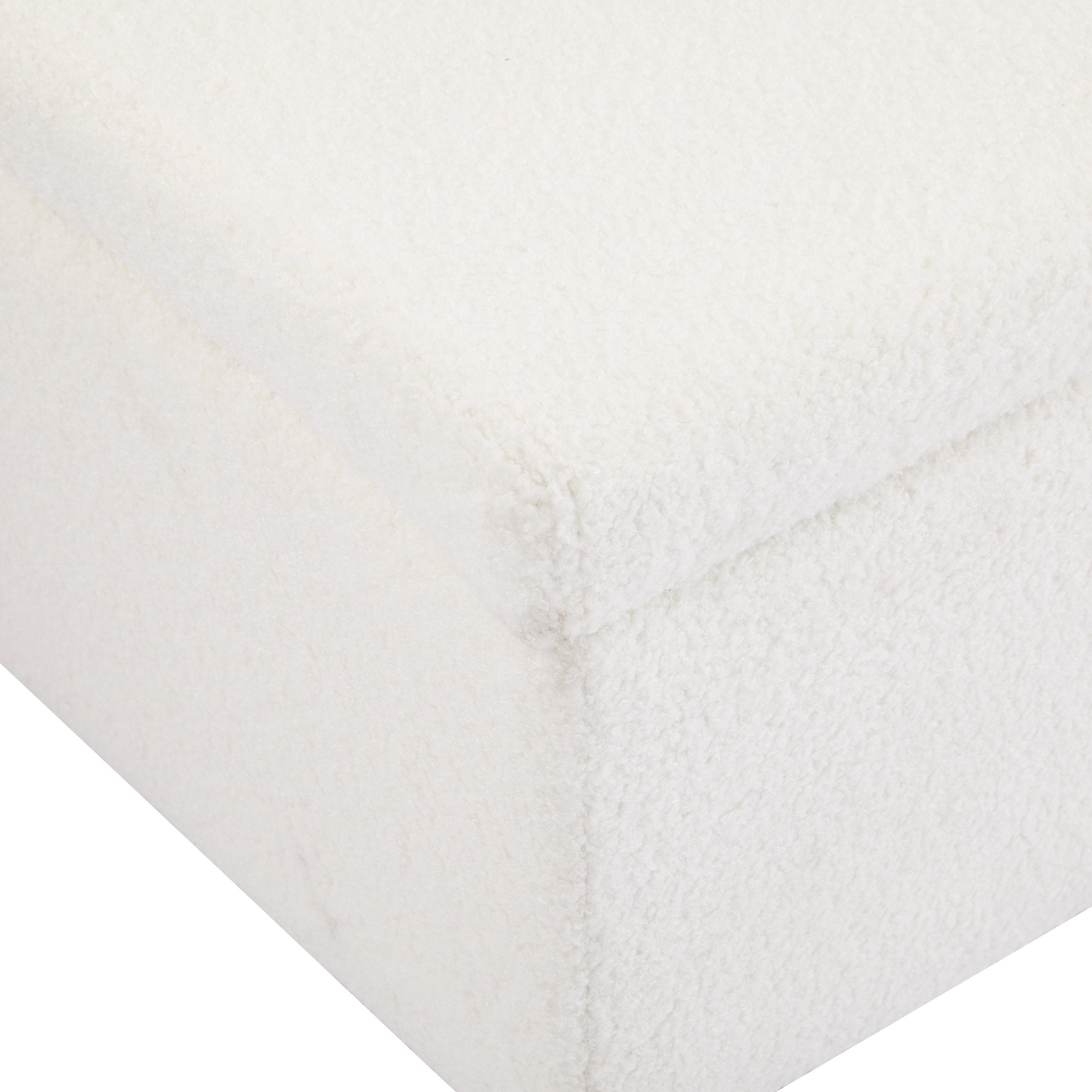 - Upholstery: Soft white boucle fabric for a cozy, contemporary look and tactile comfort