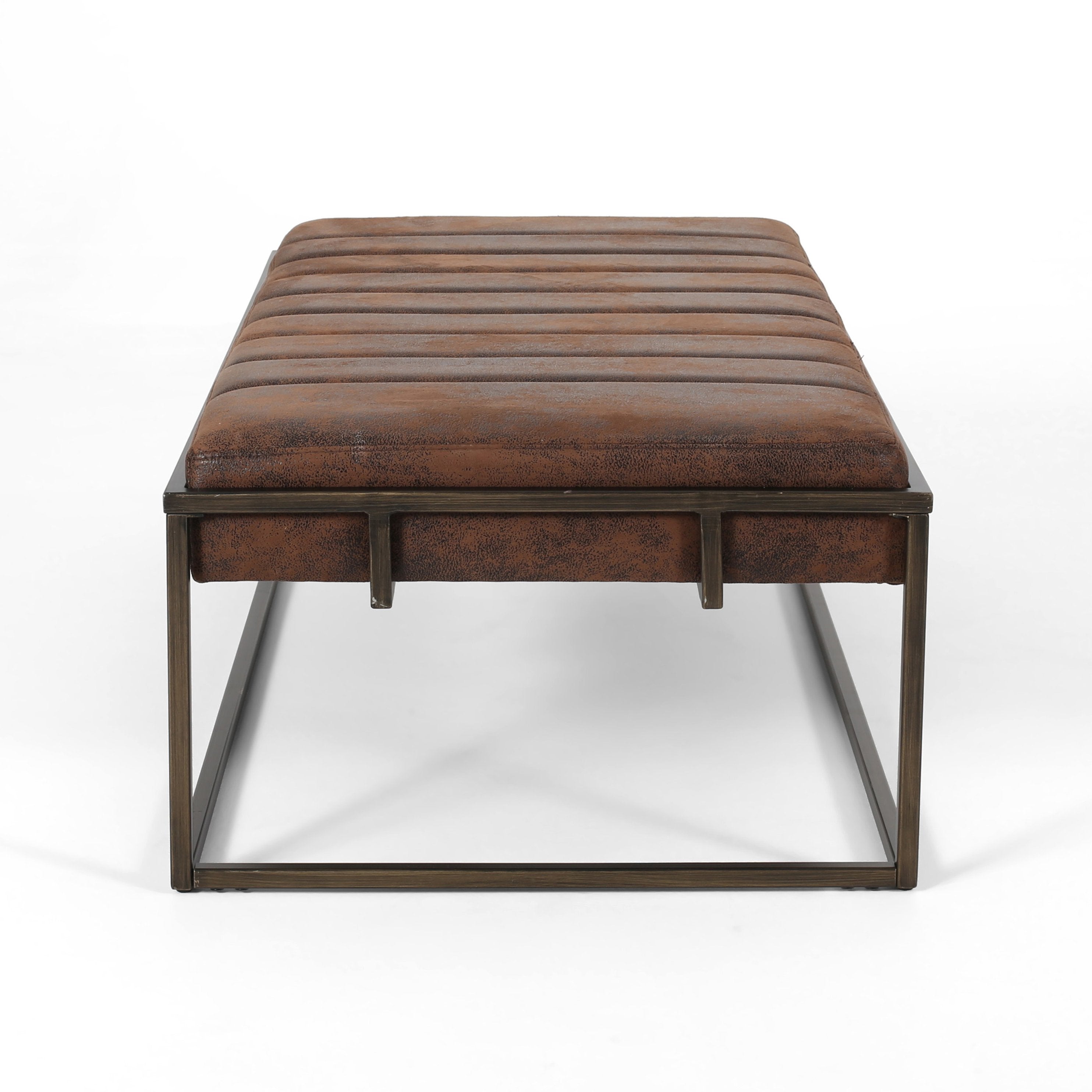 Add a touch of modern elegance and cozy comfort to any room with this upholstered metal ottoman bench. Its plush velvet-like seat and brushed gold metal frame create a stylish focal point that works equally well at the end of a bed, in an entryway, or as extra seating in a living area. Built for everyday use, the bench combines an inviting feel with durable construction for long-lasting performance.