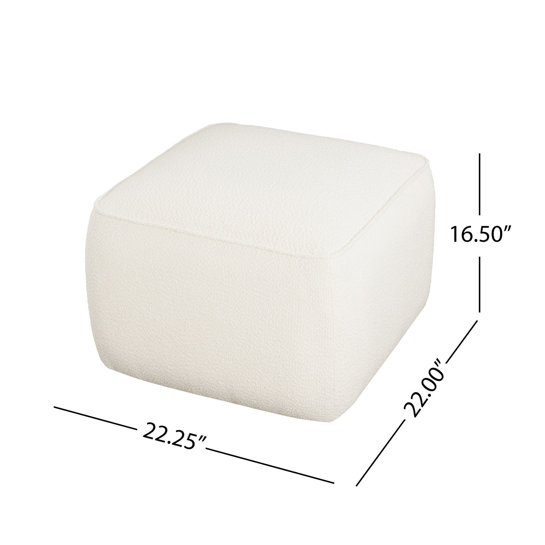 Bring contemporary comfort and timeless texture to your living space with this upholstered square ottoman in soft white boucle. Designed for versatile use—whether as extra seating, a footrest, or an accent table—its minimalist silhouette and luxurious fabric elevate any room while remaining durable for everyday life.