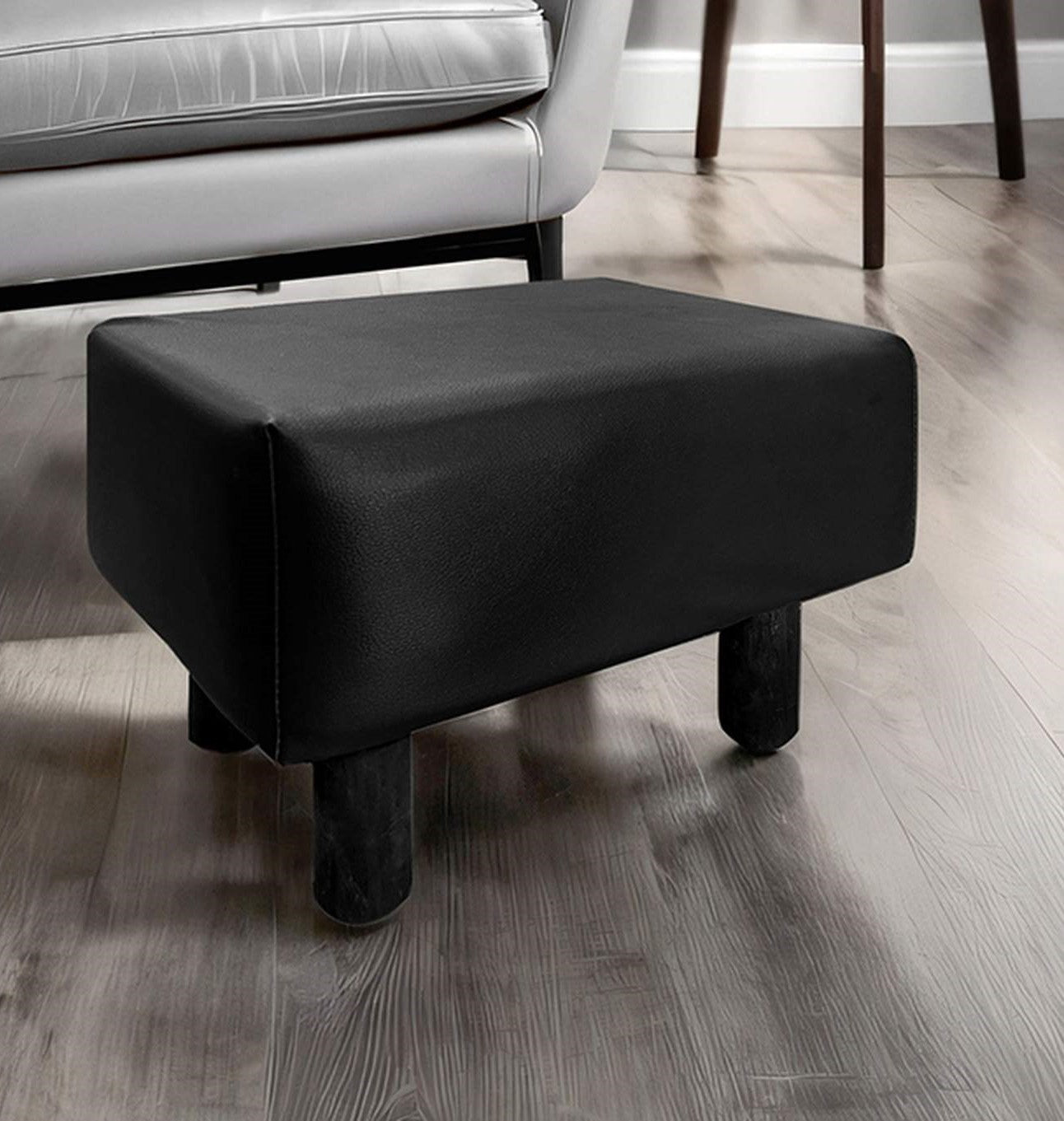 Give your living space a sleek, modern upgrade with this compact set of two black footstools. Upholstered in easy-care black leatherette and supported by black wooden legs, each footstool offers versatile function as a footrest, occasional seat, or accent piece. Built on a solid wood frame, the set is sturdy yet lightweight and requires simple assembly for fast use.