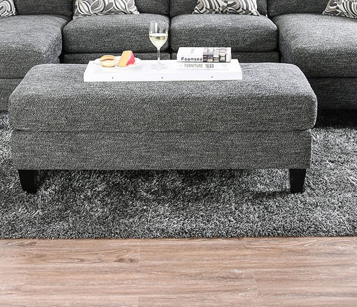 Create a cozy, contemporary focal point for your living room with this plush gray chenille ottoman. Upholstered in soft, textured fabric, it provides a versatile seat, footrest, or extra surface while blending effortlessly with modern and transitional decor. Designed for comfort and built for everyday use, this ottoman pairs well with coordinating chaises and chairs (sold separately) and arrives with simple assembly required.