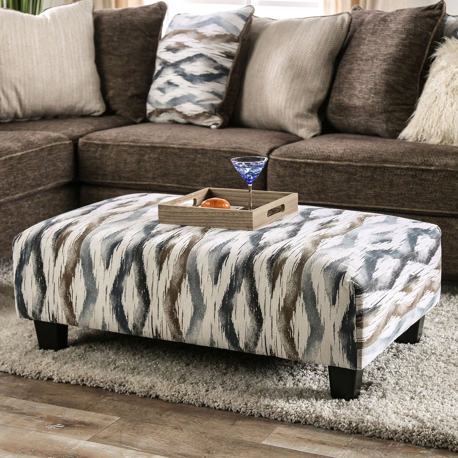 Elevate your living space with this contemporary design-printed upholstery ottoman — a stylish, versatile piece that blends artistic patterning with comfortable, soft microfabric. Its bold, culturally inspired print and tapered block legs create a refined focal point that works as extra seating, a footrest, or a casual coffee table with a tray.