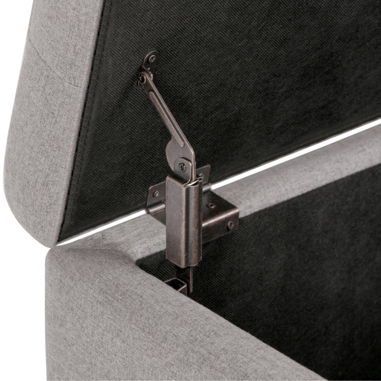- Upholstered with a durable Cloud Grey Linen Look Fabric