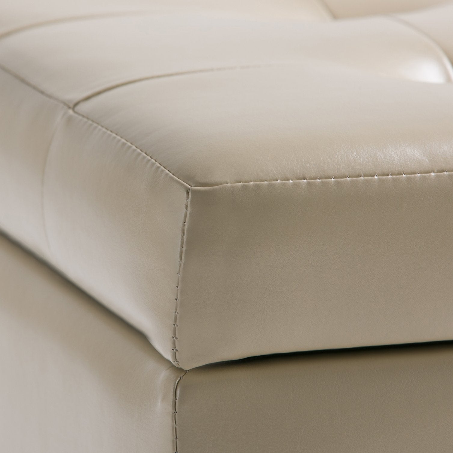 Add a touch of refined versatility to your home with this Cosmopolitan storage ottoman in Satin Cream. Thoughtfully designed for comfort, style, and everyday utility, it doubles as seating, a footrest, an entryway bench, or a discreet storage solution. The tufted top and subtle stitching blend transitional charm with modern practicality, while durable vegan faux leather offers an easy-care, elegant finish.
