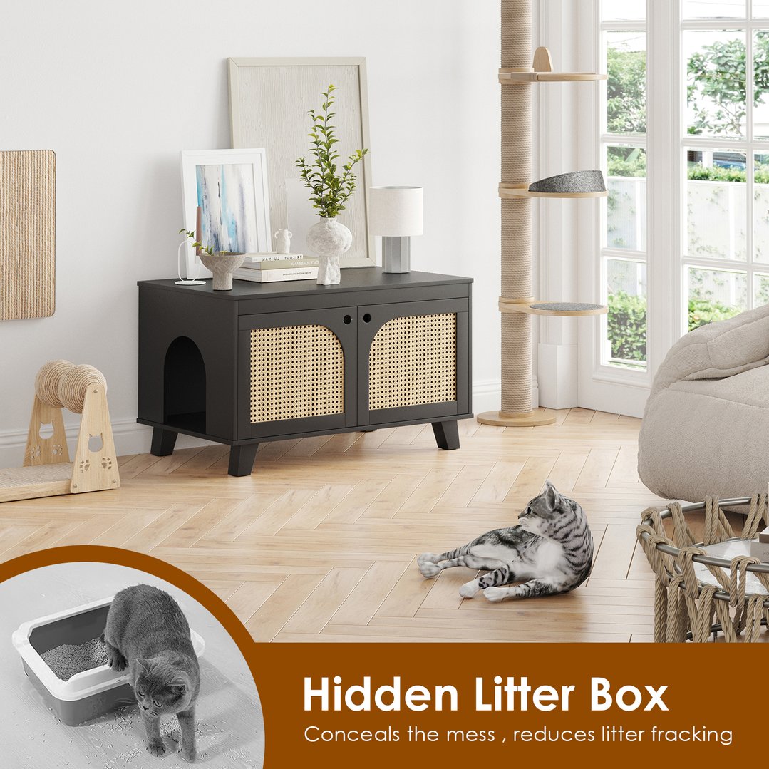 - CONTEMPORARY DESIGN:The cat litter box combines a rattan edge door and round hole handles to give the entire litter a contemporary design that can be easily incorporated into a variety of interior furniture styles