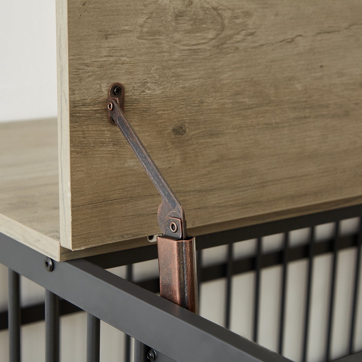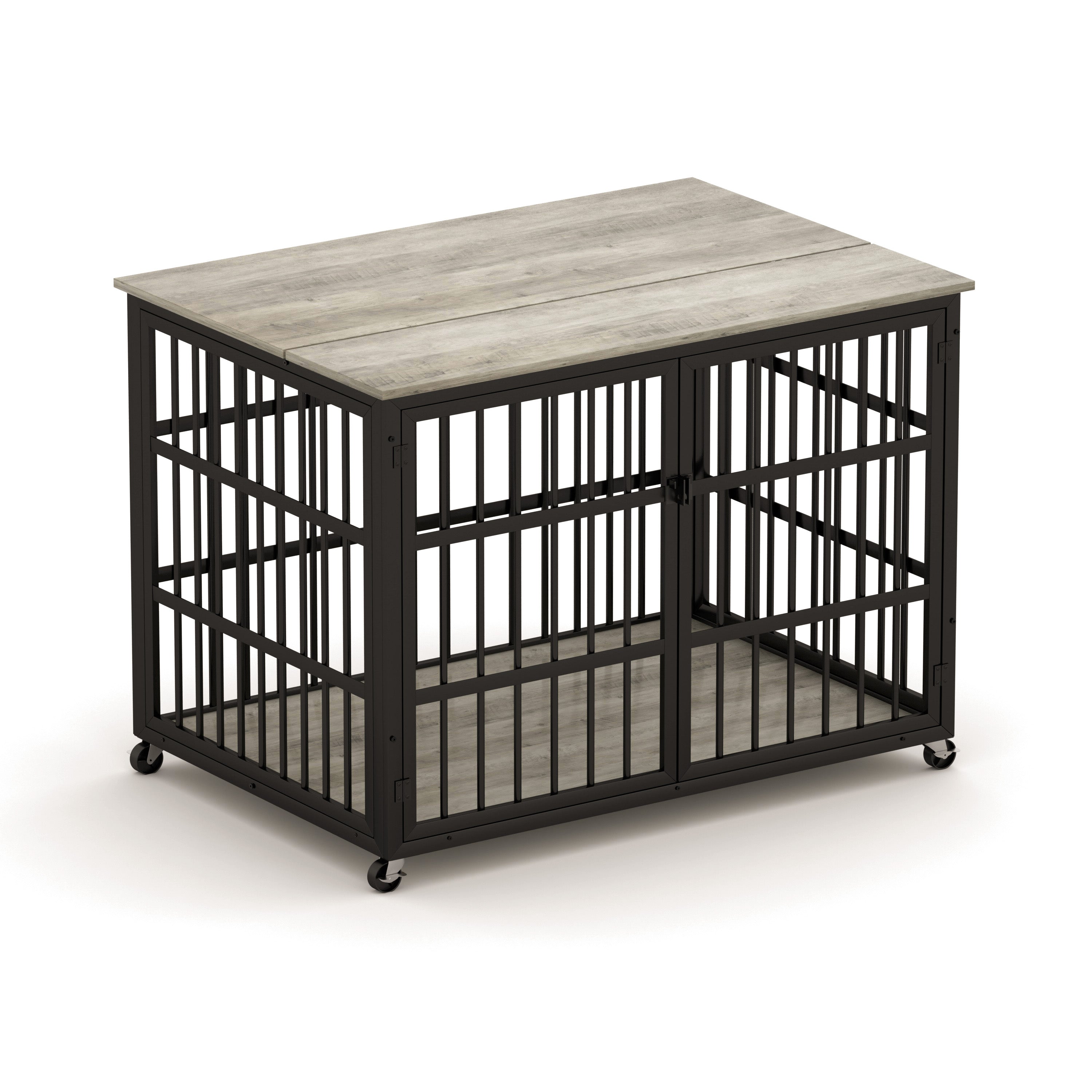 This furniture-style dog crate combines the security of a sturdy steel frame with the warm, home-friendly look of rustic brown particle board to create a comfortable den for your pet that also functions as attractive living-room furniture. Designed for medium-sized dogs, the crate offers easy access through a front door and convenient side openings, while the reinforced top provides extra storage or display space to blend seamlessly into your home.