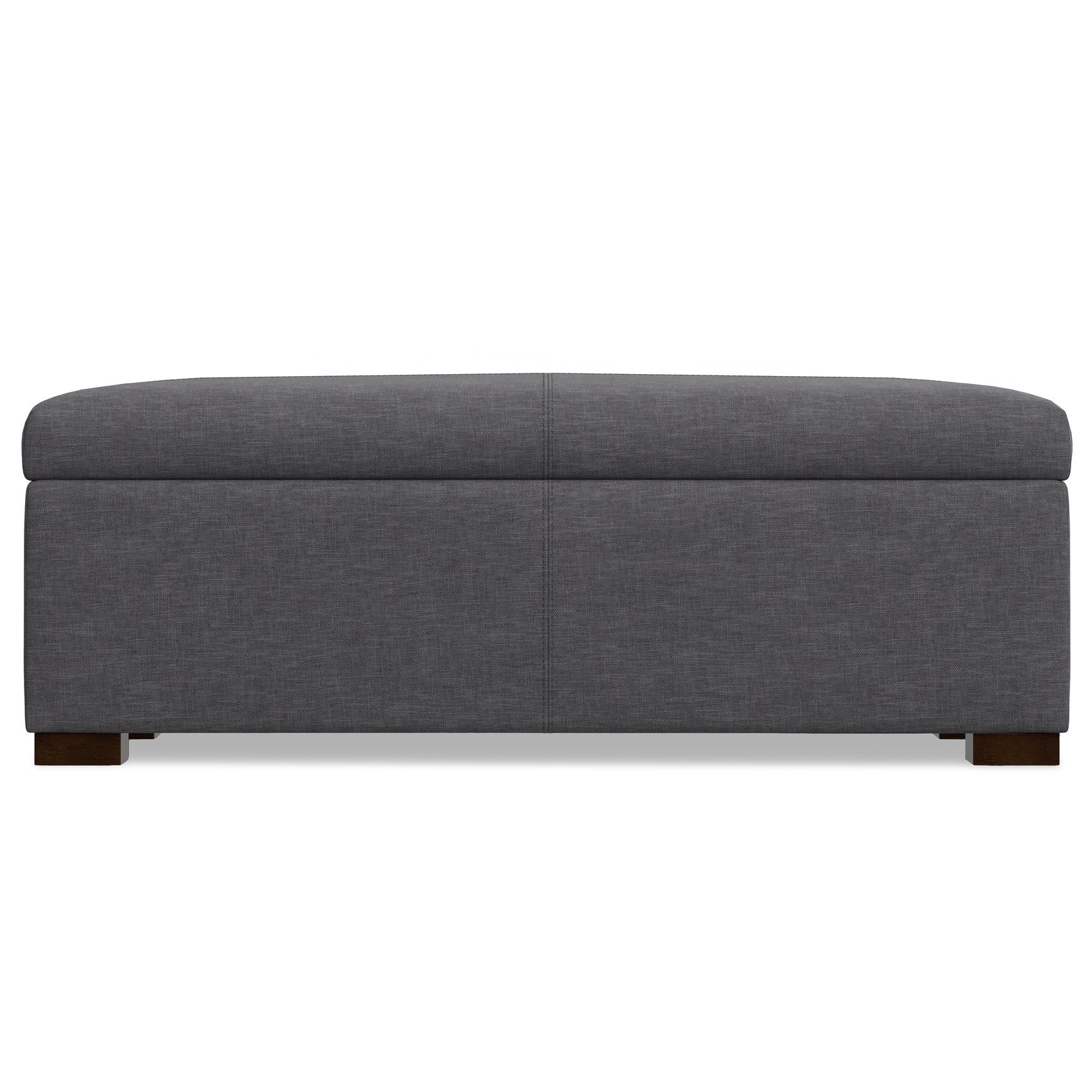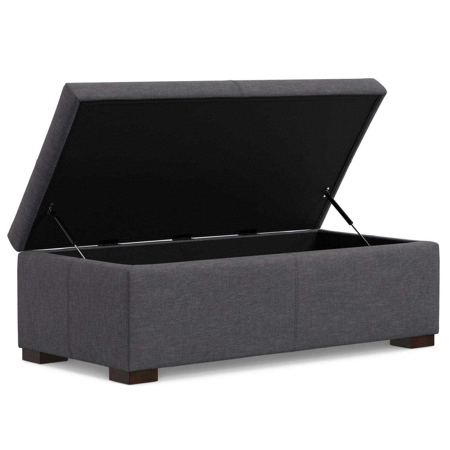 A versatile and stylish addition to your living room or family room, this rectangular storage ottoman combines practical storage with comfortable seating and modern design. Upholstered in a durable slate-gray linen-look fabric with tailored stitching, it offers a clean aesthetic that complements contemporary and transitional interiors while hiding clutter and providing flexible surface space.