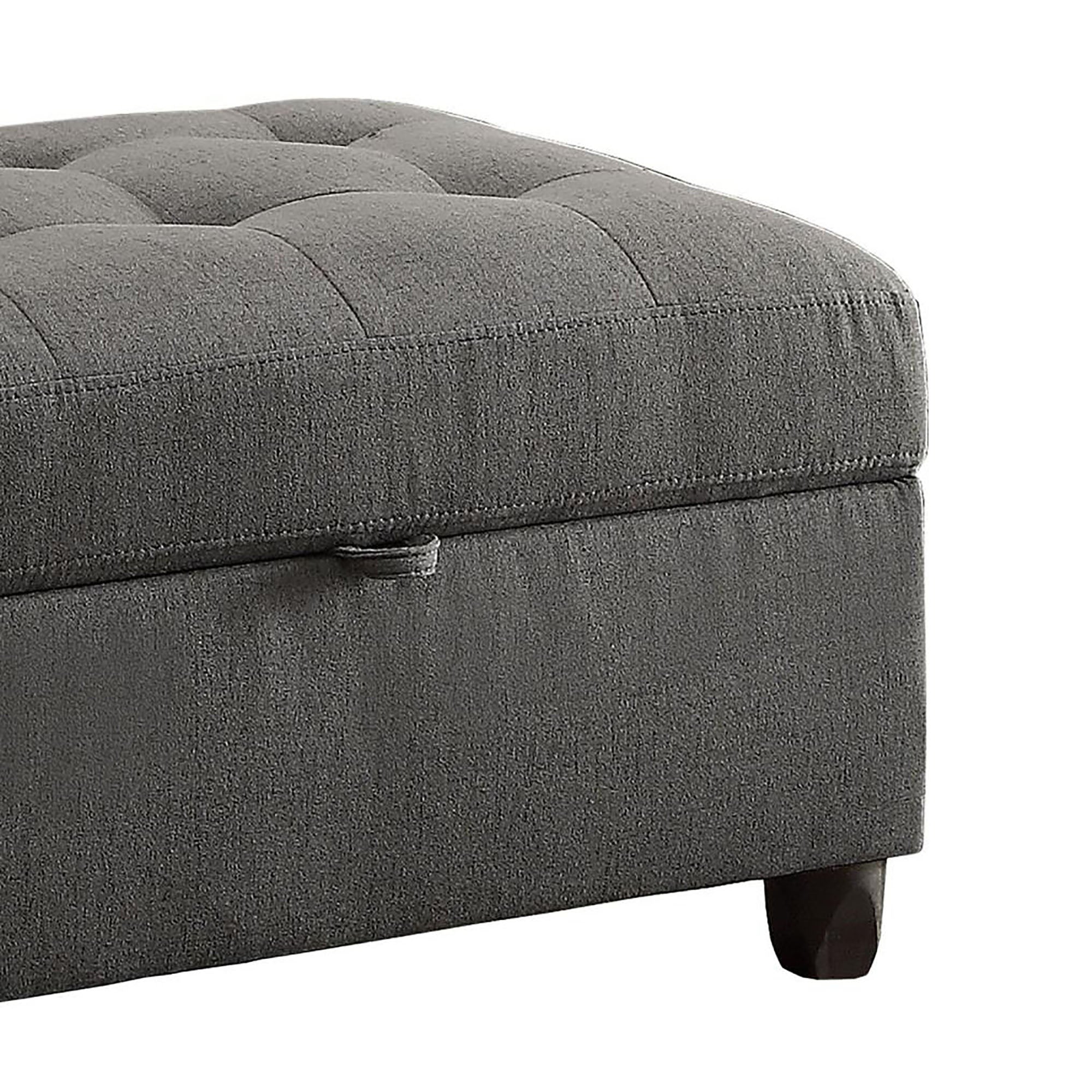 Add a touch of modern elegance and practical storage to any living area with this stone-grey storage ottoman. Upholstered in soft, durable linen-like fabric with classic tufting and a sleek silhouette, it functions beautifully as extra seating, a footrest, or a stylish accent. The lift-top reveals generous hidden storage—perfect for blankets, pillows, or living-room clutter—accessed easily via a discreet loop pull handle.