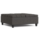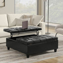 Invite versatile style and smart storage into your living space with this large square storage ottoman. Upholstered in distressed black vegan faux leather with stitched tufting, it blends transitional design with practical features—serving as a coffee table, extra seating, a footstool, and concealed storage—while remaining easy to assemble and family-friendly.