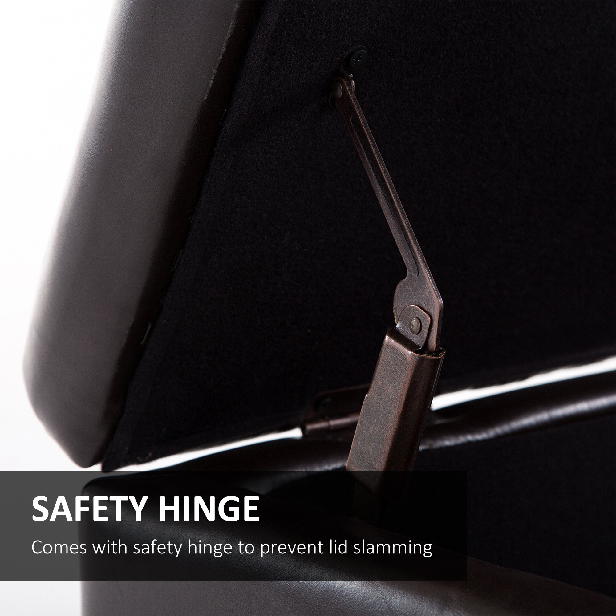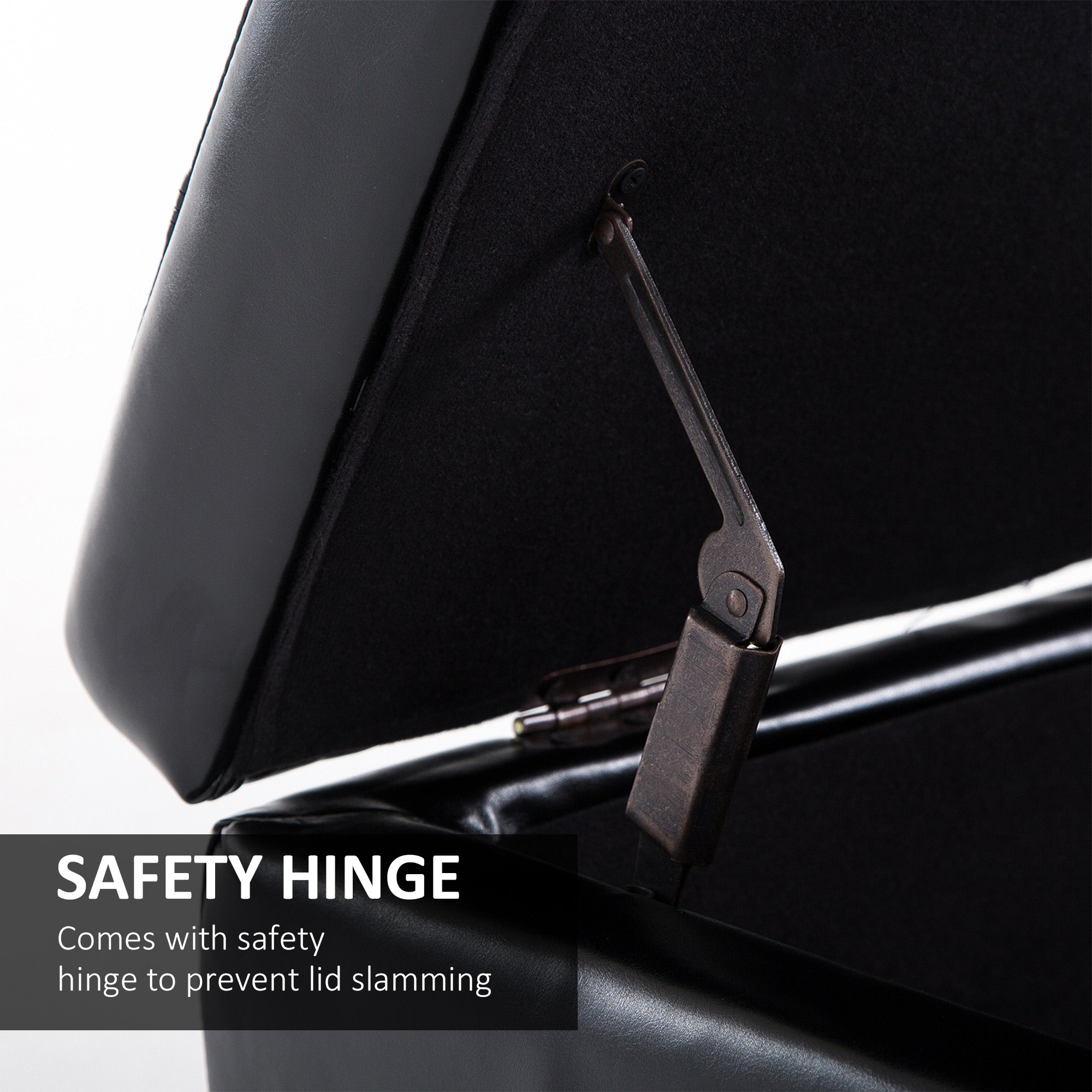 Add a touch of modern elegance and practical storage to your living room, entryway, or bedroom with this stylish tufted ottoman storage bench. Upholstered in durable black faux leather with a thickly padded lift-top seat, it combines comfortable extra seating with a discreet space-saving solution for blankets, pillows, shoes, and other everyday items.