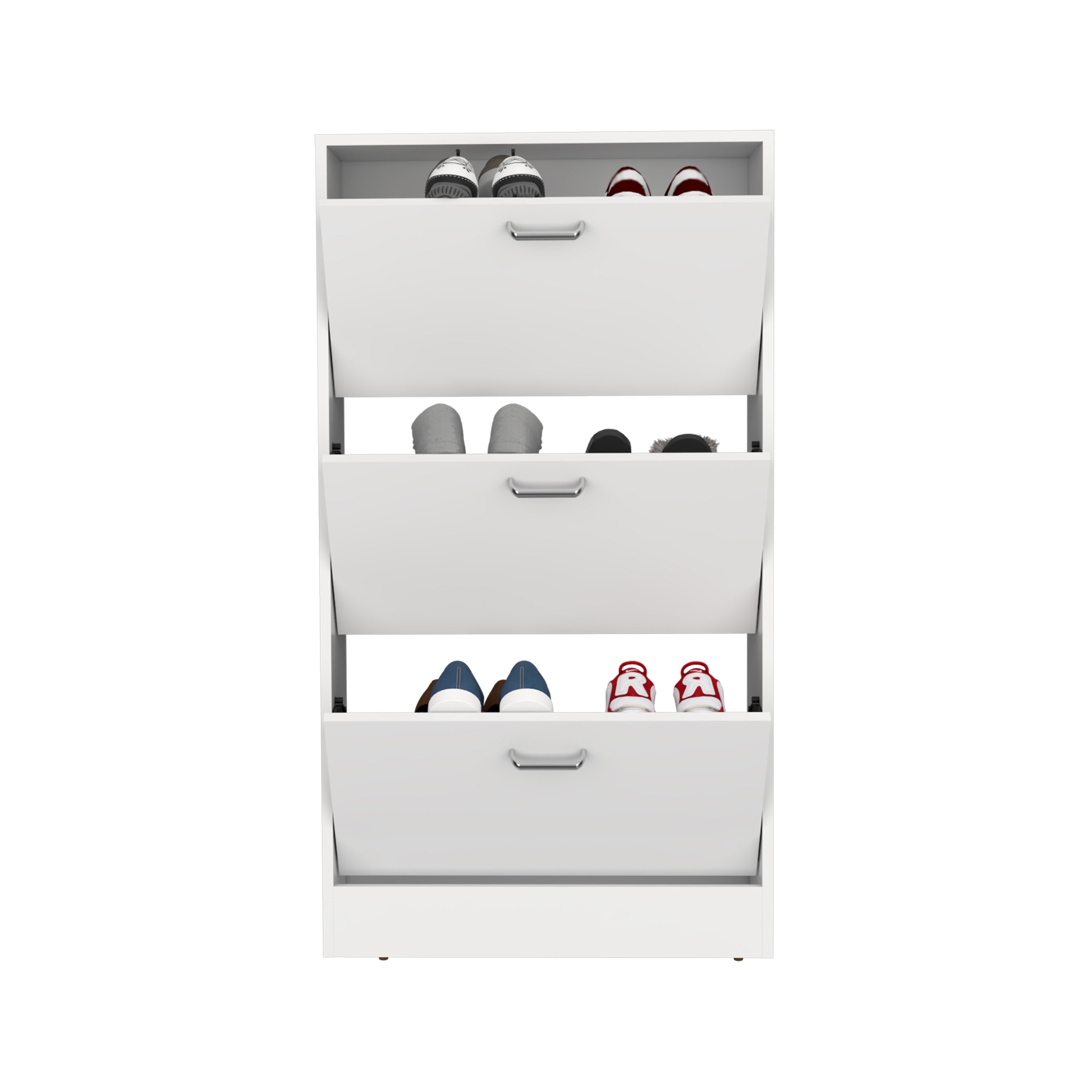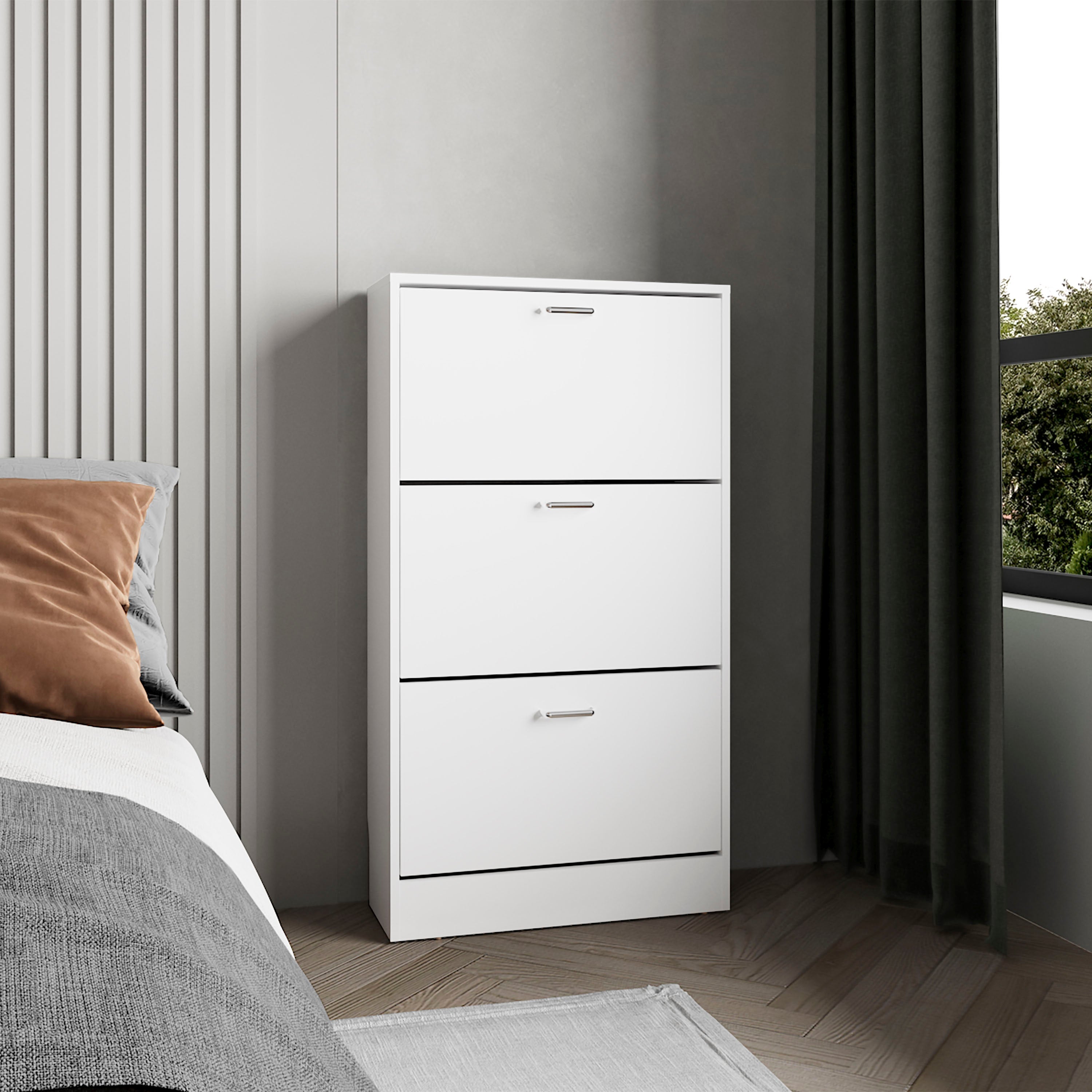 - Threepull-downcompartmentsprovidediscreetandefficientstorageforupto18pairsofshoes.