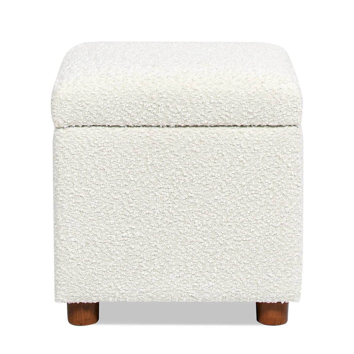 Add a touch of cozy, modern texture to any room with this Ivory White Bouclé cube ottoman. Versatile and stylish, it works as extra seating, a footrest, or a compact side table while offering hidden storage to keep living spaces tidy. The plush bouclé upholstery provides a soft, tactile finish that complements contemporary and transitional decor.