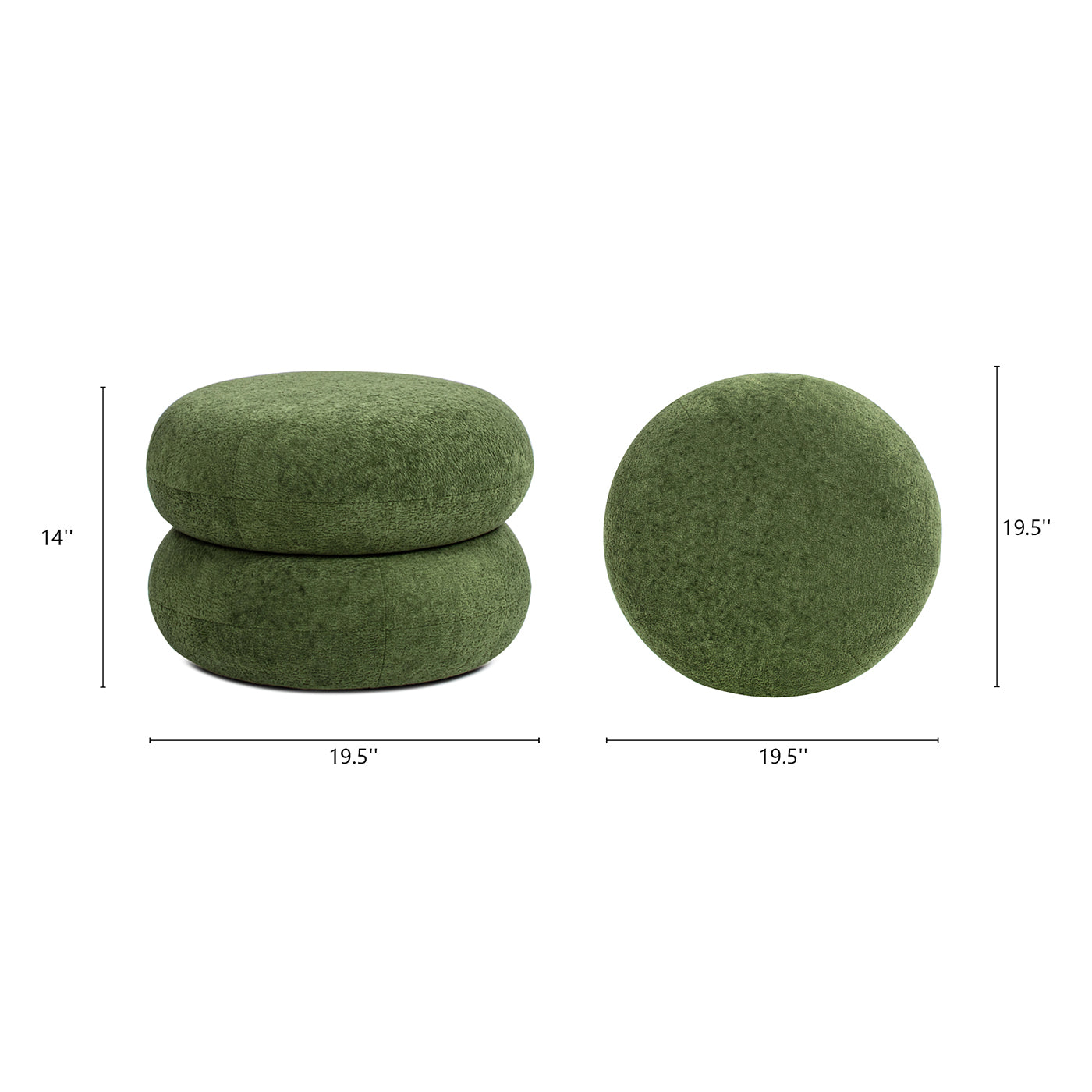 Add a playful, sculptural accent to your living space with this low, round upholstered ottoman. Its stacked-pouf silhouette and soft chenille upholstery create a cozy focal point that works as a footrest, extra seat, or accent piece—especially well suited for casual and modern interiors or small, multifunctional rooms.