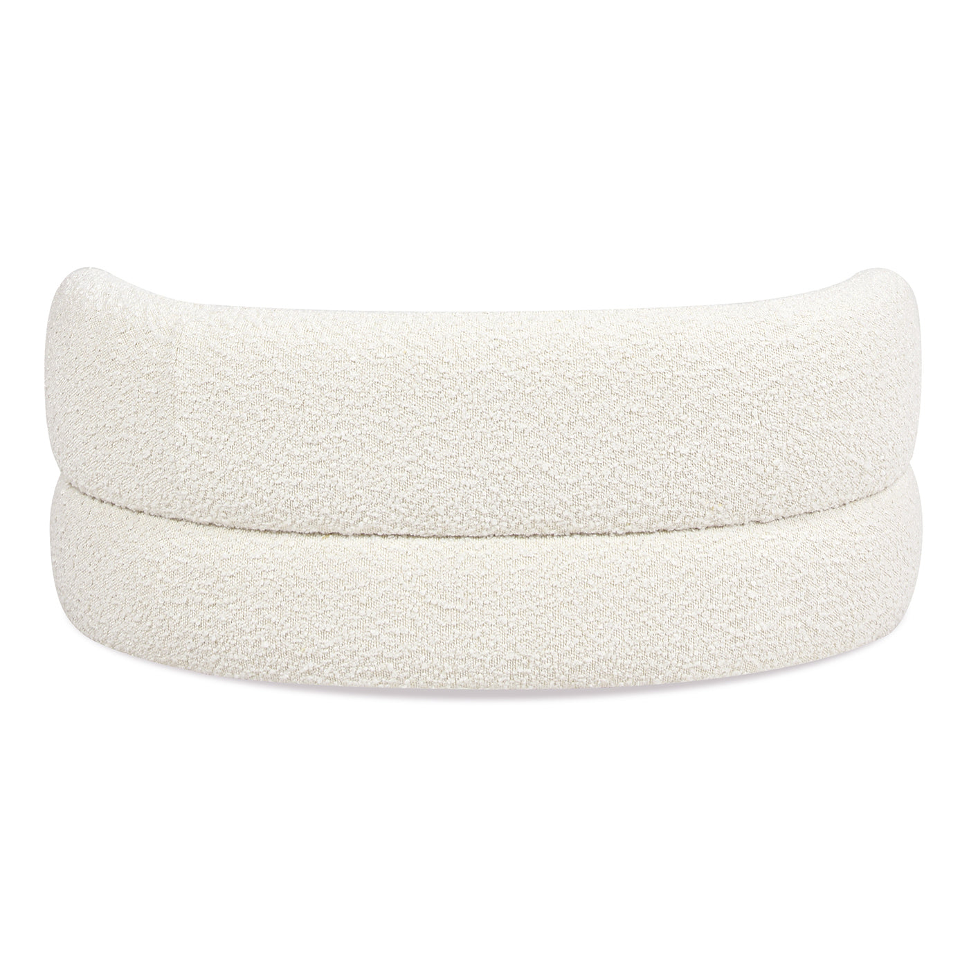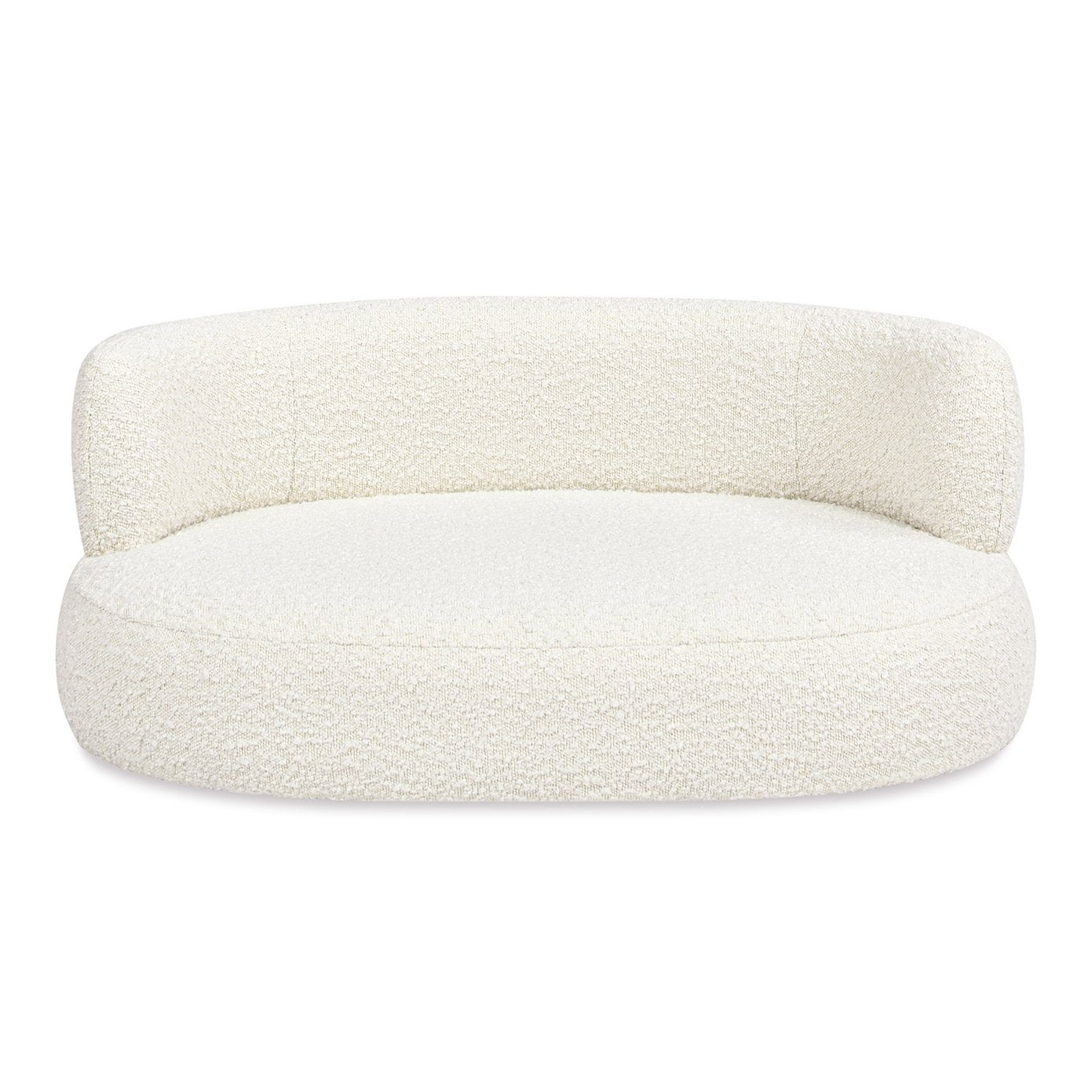 Give your pet a stylish, cozy spot to lounge with this modern curved dog sofa designed for comfort, support, and lasting durability. Its soft ivory boucle upholstery and sculpted silhouette bring Scandinavian and Mid-Century Modern flair to any room while providing a plush, supportive resting place for small to medium dogs.