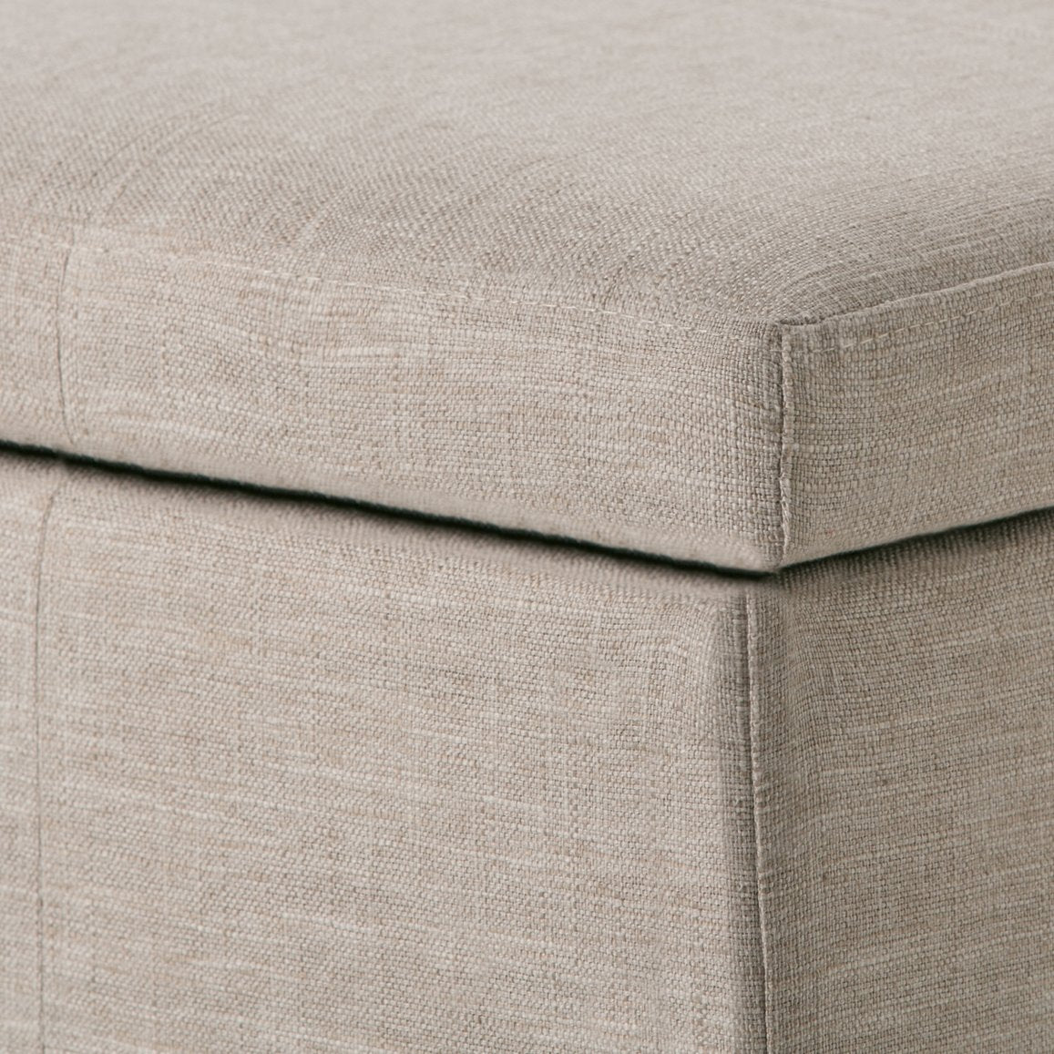 Add stylish storage and extra seating to any room with this versatile Kingsley large storage ottoman. Crafted for everyday use, it combines a neutral linen-look fabric, thoughtful details, and generous interior space to serve as an entryway bench, footstool, extra seat, or accent piece in living rooms, bedrooms, and family rooms.