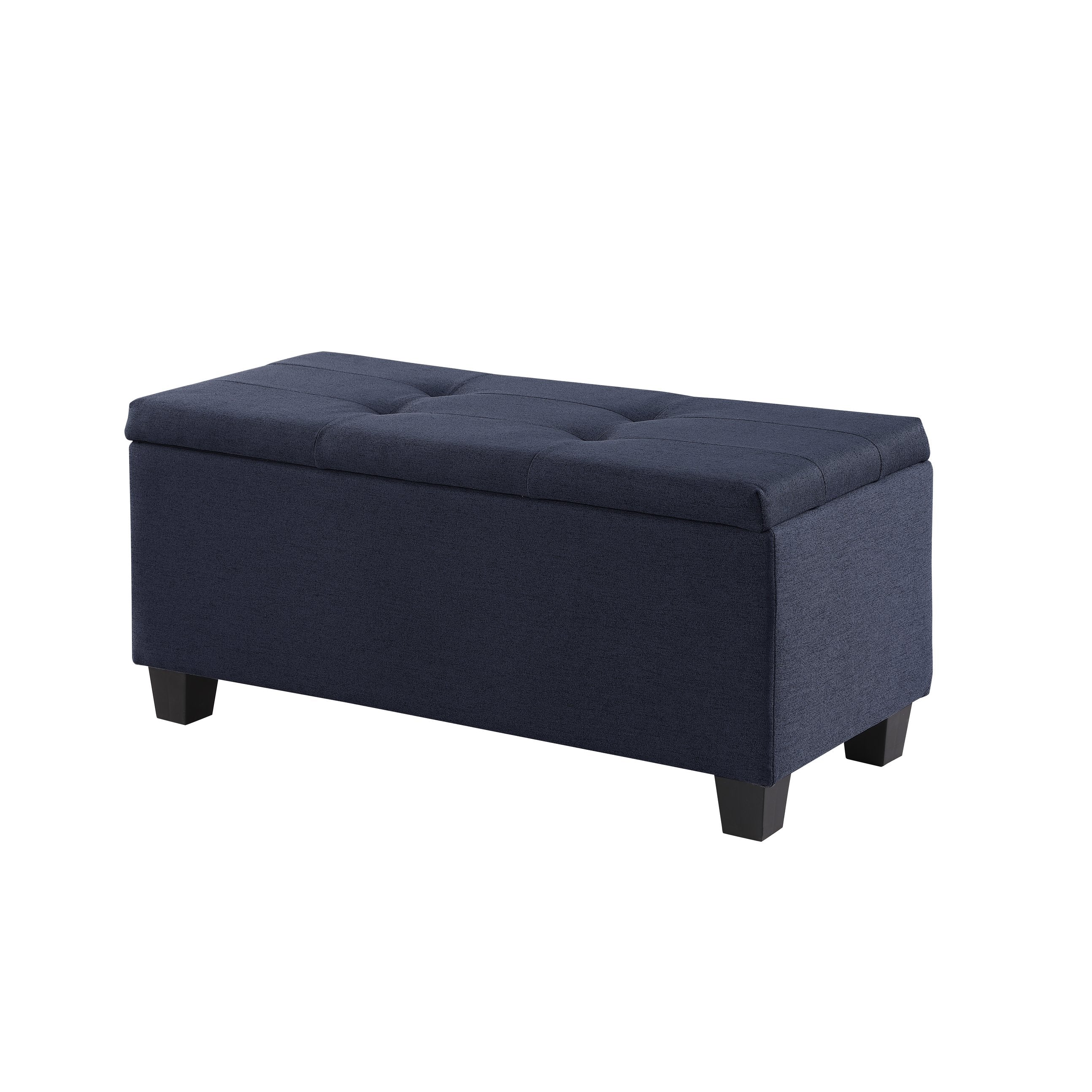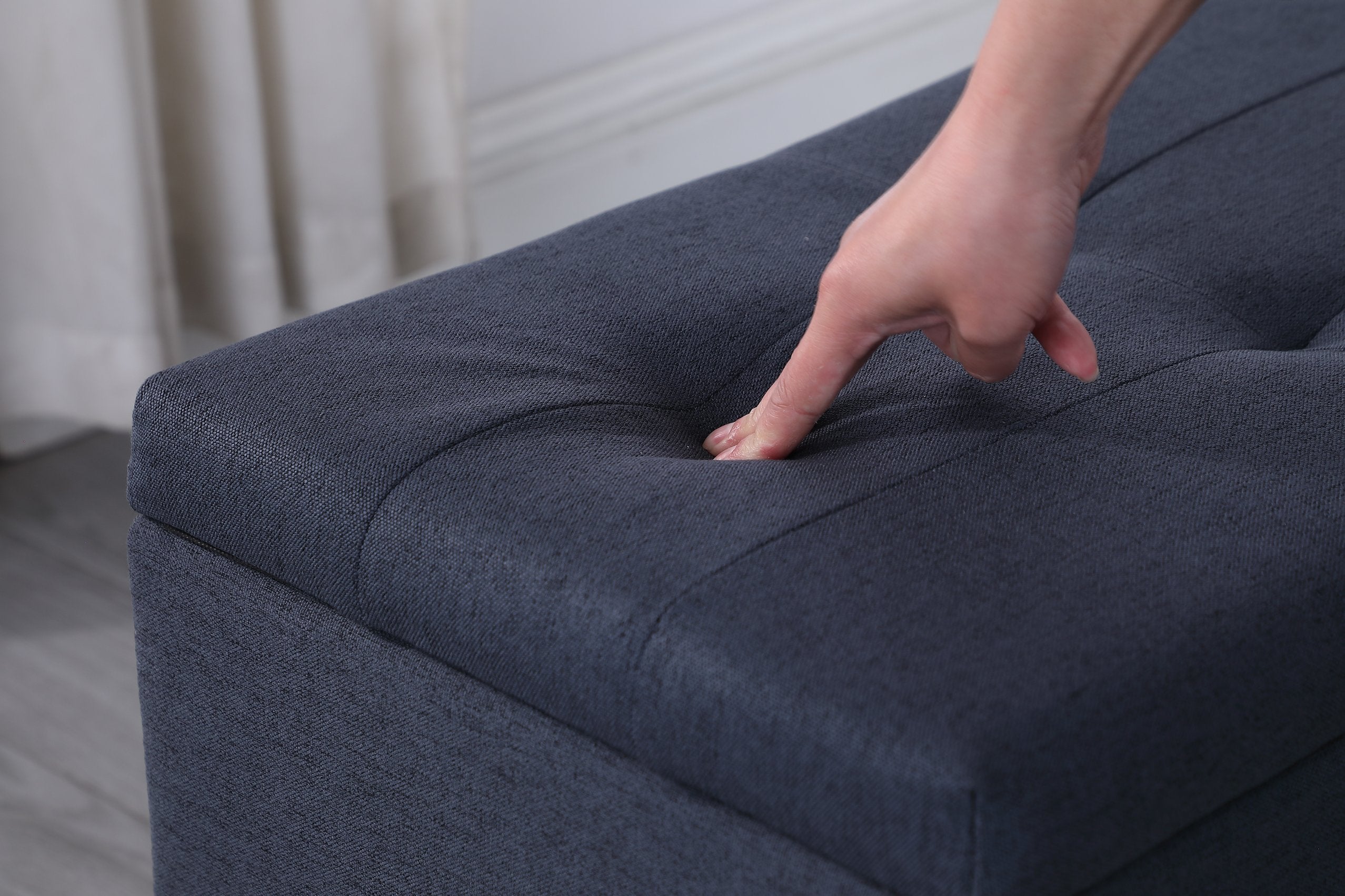 - Covered with linen upholstery with tufted detailing at the top for an upscale look. Safety hinges ensure the lid remains open until you put away all items, preventing slamming.