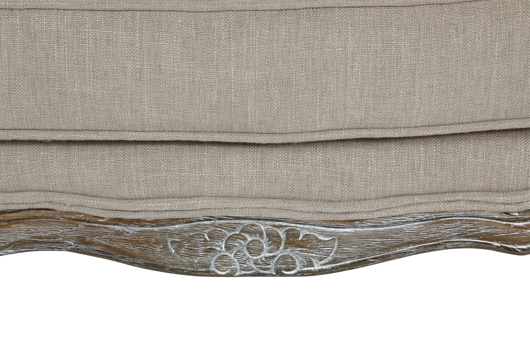 Elevate your living space with this elegant accent ottoman that blends classic carved wood details and a relaxed, weathered gray finish. The textured fabric upholstery and plush foam-and-feather seat create a refined yet comfortable focal point for seating, lounging, or as a stylish footrest. Its versatile silhouette works well in traditional, transitional, or coastal-inspired interiors.