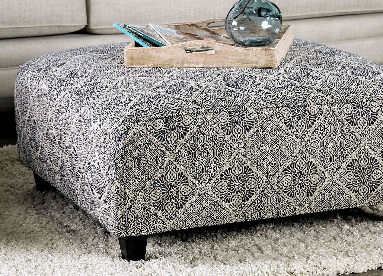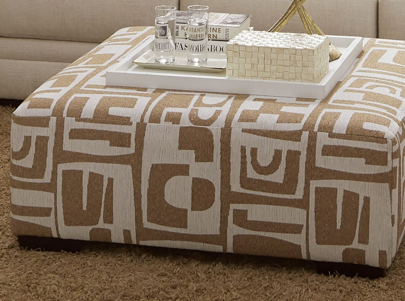 This modern-transitional square ottoman blends contemporary clean lines with warm, rustic textures to create a versatile centerpiece for living rooms, family rooms, or lounge areas. Upholstered in complementary ivory and tan tones, it provides a stylish, low-profile surface for seating, lounging, or showcasing a tray while anchoring a variety of decor styles from farmhouse to modern.