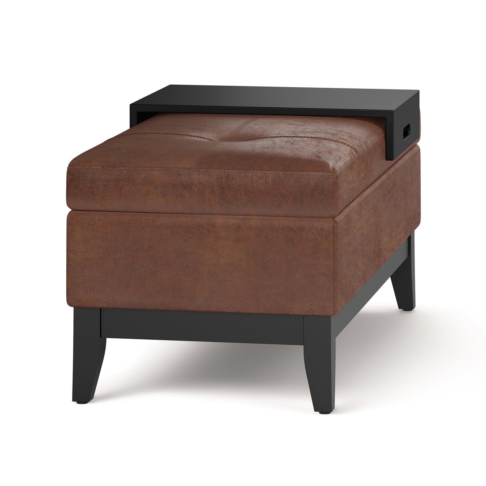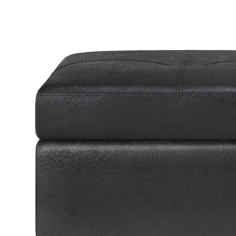 Bring style and smart storage to any room with this versatile storage ottoman bench. Upholstered in durable satin cream vegan faux leather with tailored tufting and top-stitching, it functions as seating, a footrest, an entryway bench, and hidden storage—complete with a removable serving tray and a child-safe lift lid for everyday convenience.